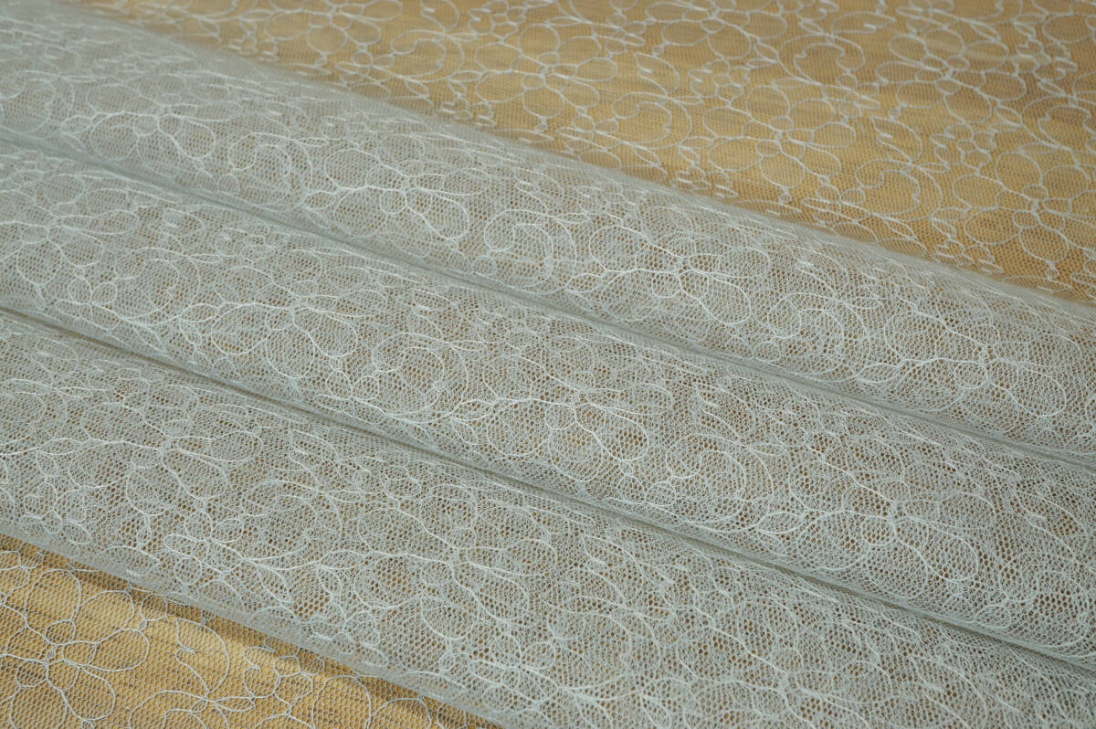 線画のような繊細な細いタッチの花柄刺繍のシアーチュールレース生地の出品でhございます。