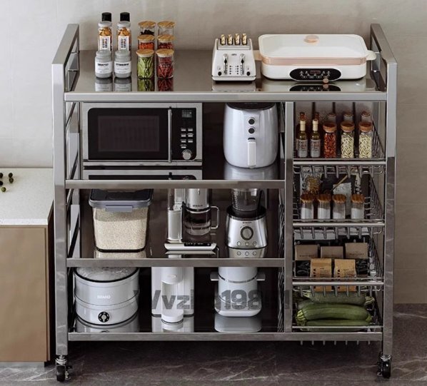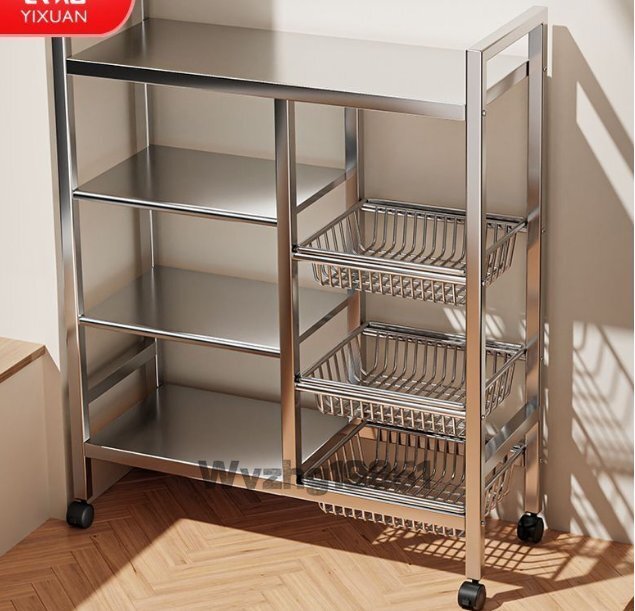| 多層ステンレスキッチン野菜バスケット置物棚着地多層家庭用果物野菜収納多機能電子レンジ鍋棚 寸法:図のように 材質種類:201ステンレス鋼 *荷重約150斤 ラミネート調整可能 各階は調理器具の高低に応じて柔軟に調整でき、大物調理器の電気を恐れない 重厚な家電の雑物は自由に置いて、安定して崩れにくい 多元階層空間、厨房電気雑物はそれぞれその位置に設置されている 乱れを吹き飛ばす |