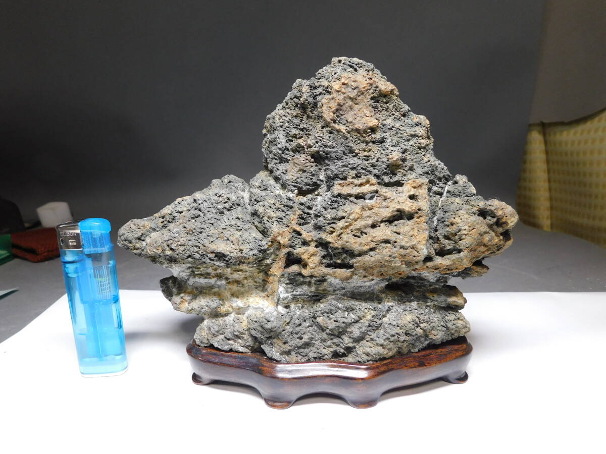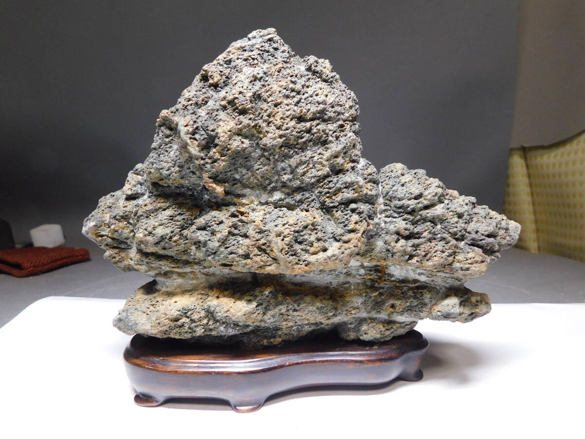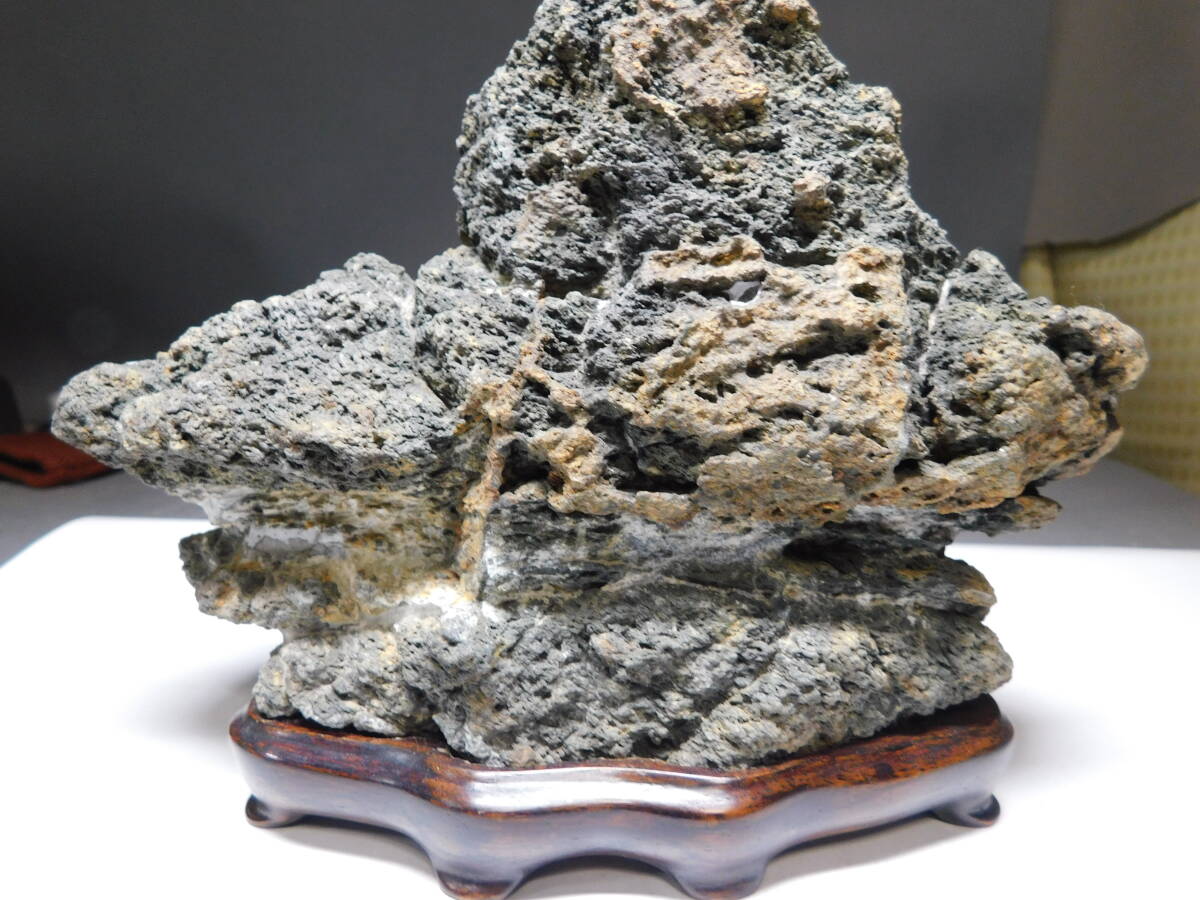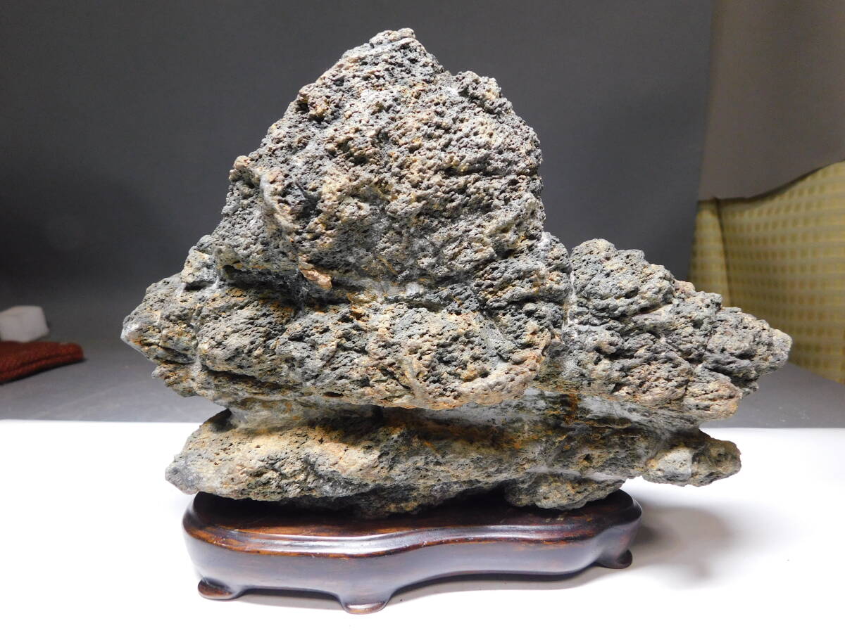 岡黒 極上 コレクター放出品 天然石 観賞石 盆石 名石 高さ15cm 無傷 珍品 売り切り