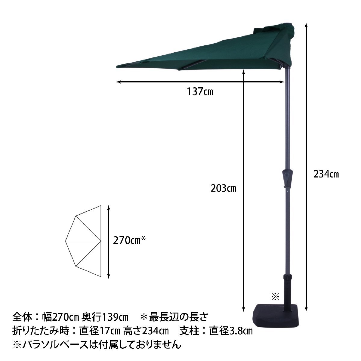 | サイズ | 全体:幅2700 × 奥行1390 × 高さ2340mm 親骨の長さ:1370mm 展開時最長辺サイズ:約2700mm 支柱直径:38mm ※詳細はサイズ画像をご確認ください。 |