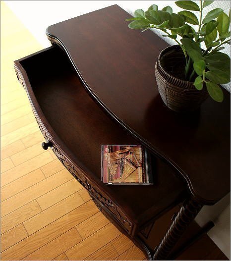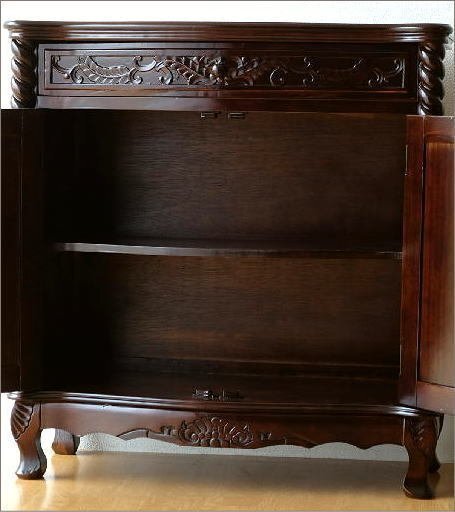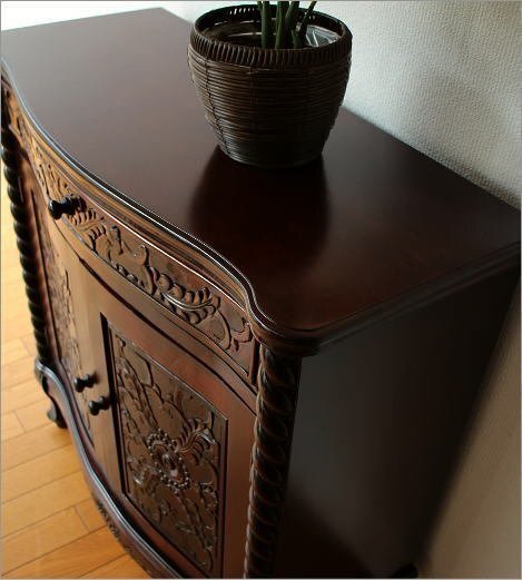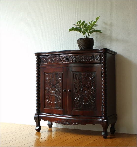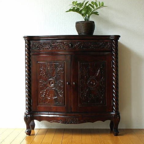 | クラシックで上品な雰囲気ただよう アンティークな家具の世界 一緒に置いたり飾ったりする小物も いっそう上品な印象を与えます こちらはねじり柱と彫刻が印象的な 猫脚キャビネットです 引き出しは1つ、 扉内は真ん中に仕切りが1つあります オーソドックスなデザインで、 玄関、リビング、寝室とあらゆるスペースで映えます 商品名 : アンティークなキャビネット ツイスト 商品番号 : diz9129 全体のサイズ(cm) : 幅80.5×奥行35.5×高さ83 引出内寸 : 幅64×奥行23×深さ8 扉内上板 : 幅71×奥行26×高さ25 扉内下板 : 幅71×奥行26×高さ24 材質 : 栃 重量 : 16kg 塗装 : ウレタン 組立状態 : 完成品 生産国 : 中国 ・サイズ・重量はおおよその値です ・一つずつ手作業での生産につき多少の違いはご了承ください ※使用に問題のない細かな仕様変更がある場合がございます ※床のキズ防止フェルトを貼って出荷します ※本物のアンティーク家具ではございません ※扉内の棚板は固定です ※アジアン家具特有のアバウトな作りとなっています ※引き出し内部は塗装の匂いが幾分か致します |