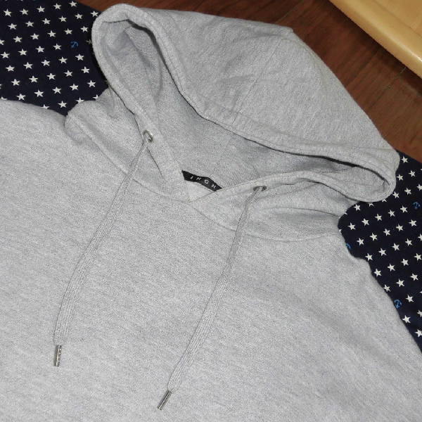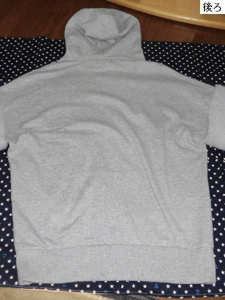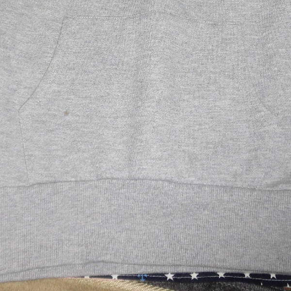 | 数回使用しましたので、前身頃に点シミが3つあり、袖口にシミと黄ばみが少しあり、 袖口裏に毛玉が少しあります。 それ以外は比較的キレイです。 ☆ サイズはM ☆ 色はグレー ☆ 実寸は、身丈67センチ、肩幅67センチ、袖丈39センチ、 脇下の幅59センチ、裾幅43センチ ☆ ポリエステル65%、綿35%、リブ部分:ポリエステル60%、綿35%、 ポリウレタン5%、袖部分:ポリエステル100% ☆ 裏起毛だと思います ☆ カンガルーポケット1つあり ☆ 袖はボア ☆ フードのフチにひも入り イング | ||