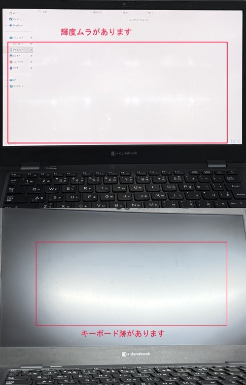 | 液晶 | 写真に映るように液晶に輝度ムラがあります 写真に映るように液晶にキーボード跡があります |