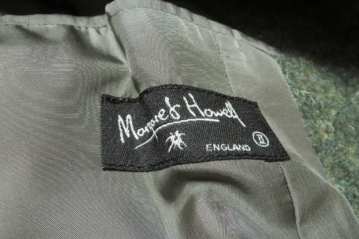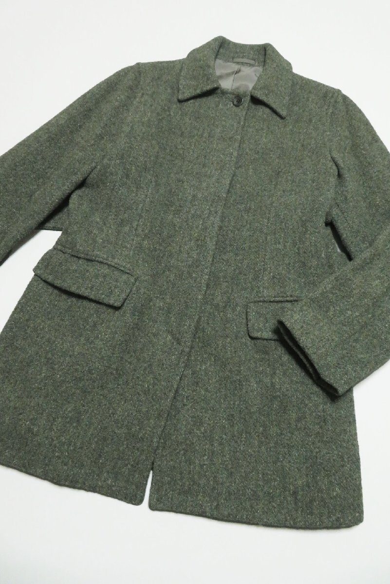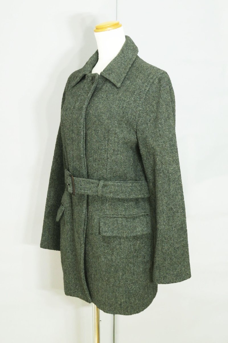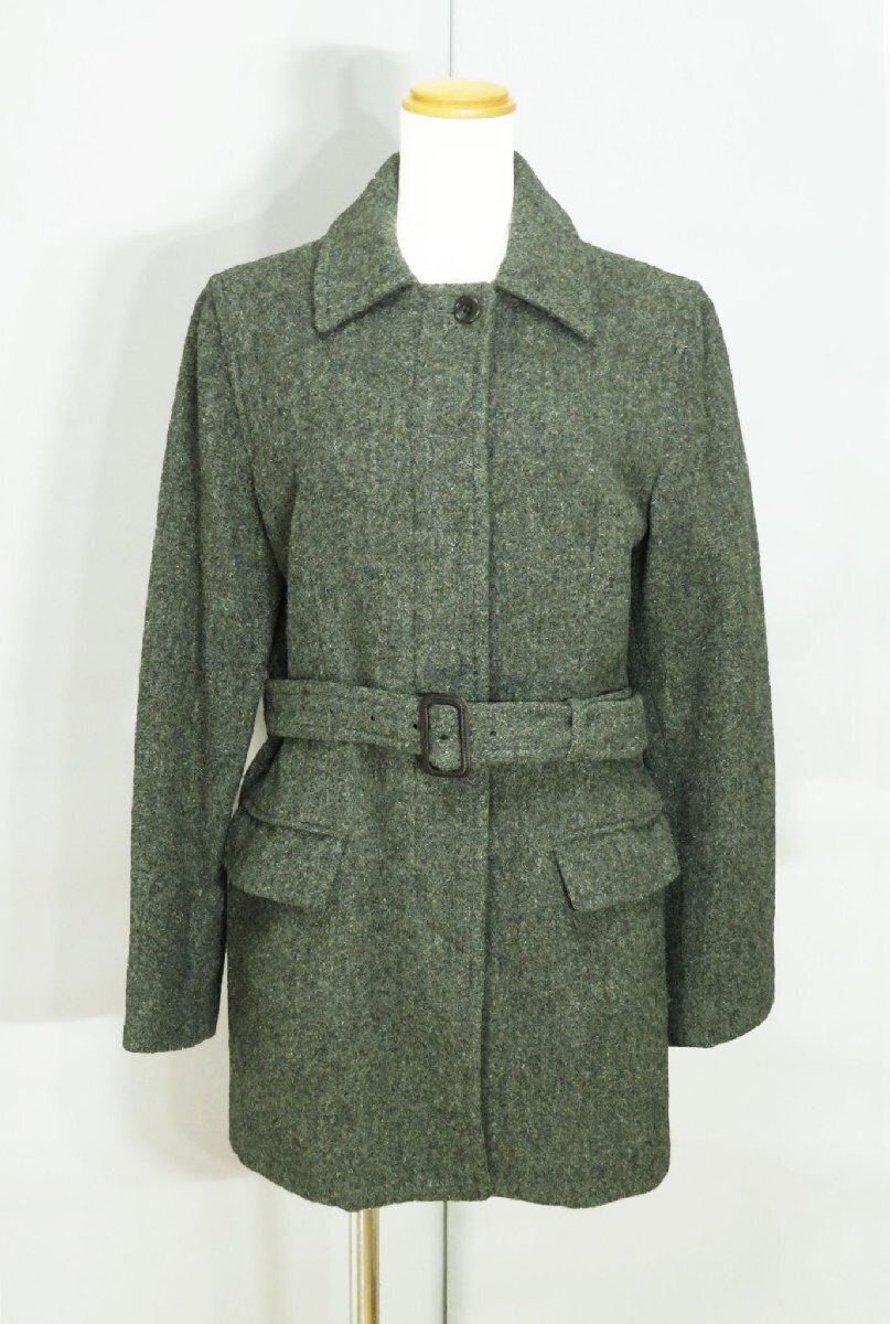 ☆美品☆マーガレットハウエル/ベルト付きウールハーフコート:2/緑系nm169