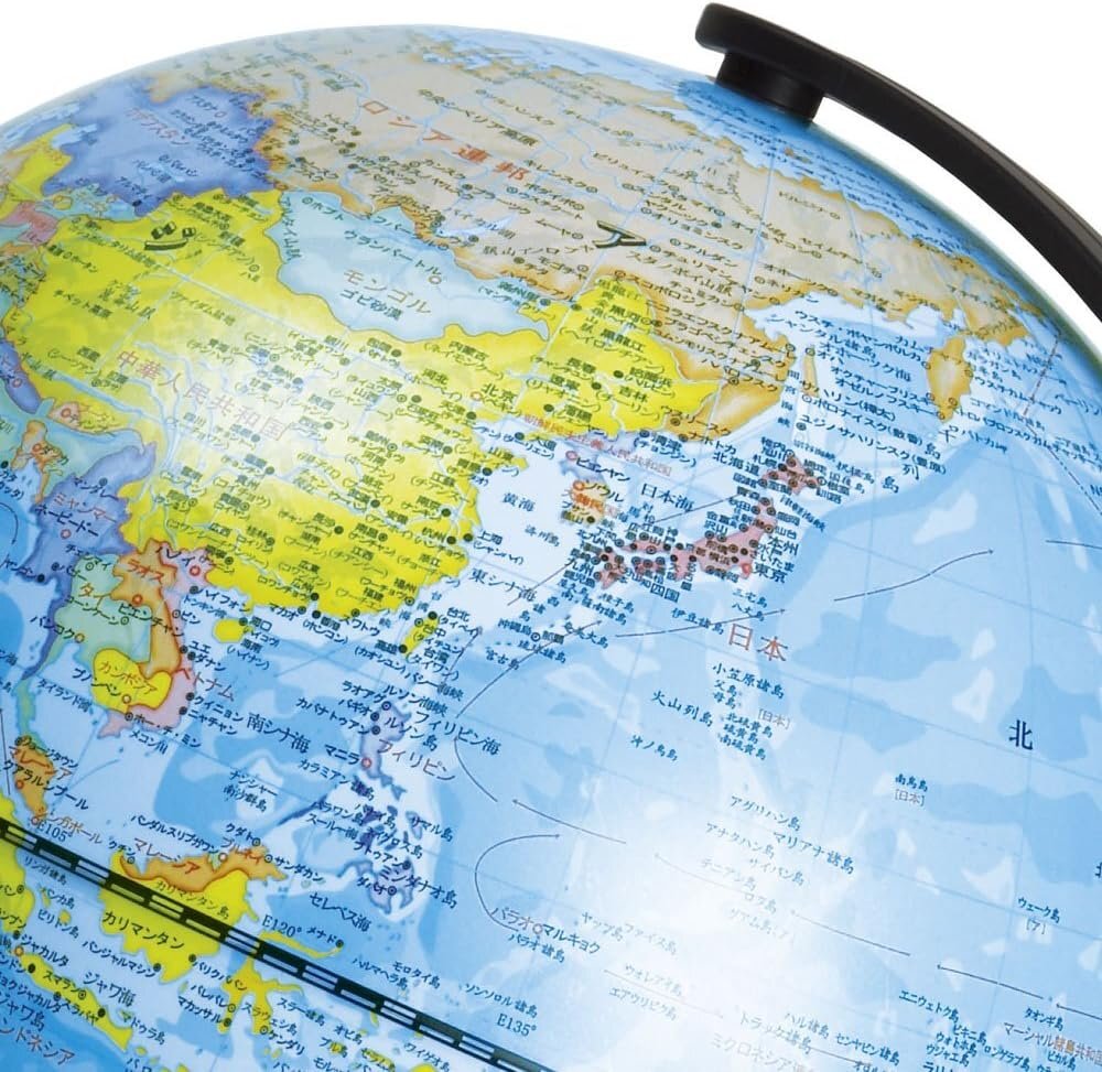 デスクにも置けるスマートな地球儀です。 国ごとに色分けされた行政図タイプ。 国の位置や大きさが分かりやすく、学習に最適です。 |