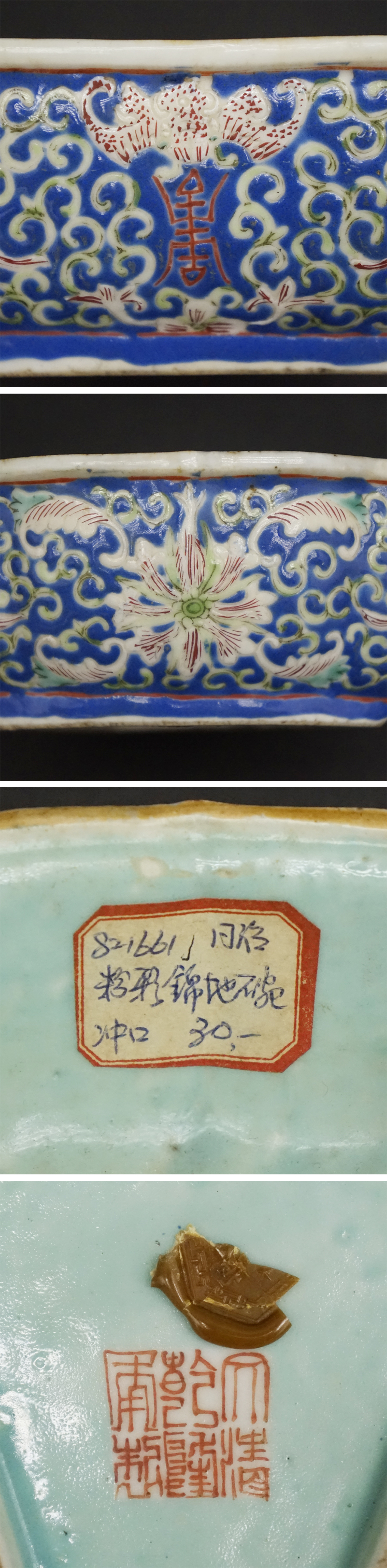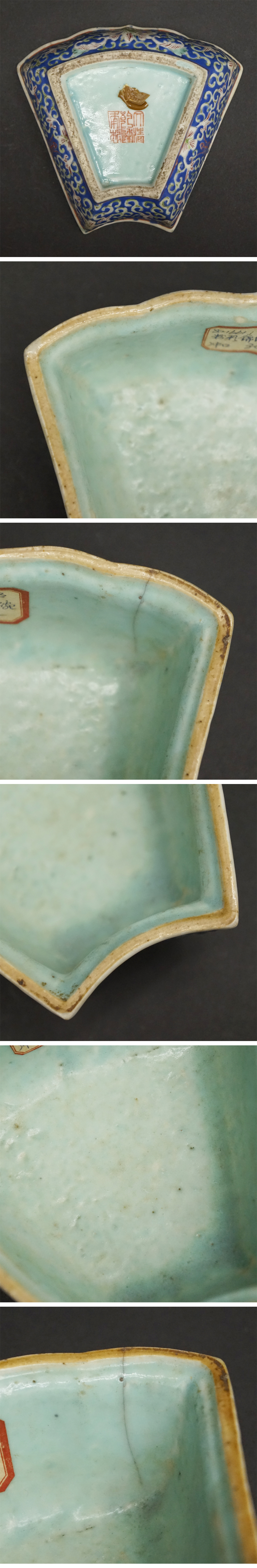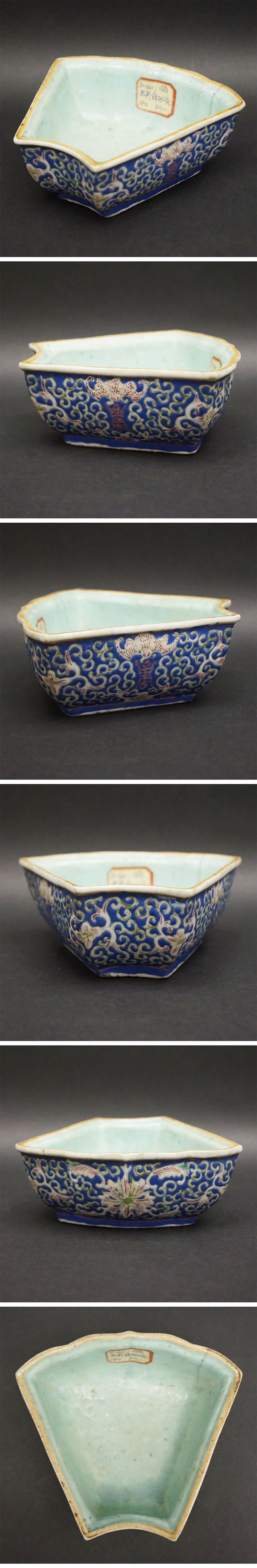 | 中国美術 中国古玩 大清乾隆年製款 粉彩花文 鉢 唐物 蝋底印 色絵磁器 骨董 文房置物 賞物 花図文 文房水洗 書道具 茶道具 時代 古美術品 経年による小傷、汚れがあります。 一か所にニュウがあります。 その他に大きな欠け、ニュウはありません。 箱はありません。 時代、年代はわかりません。 状態は画像を参考にされて下さい。 よく画像をご確認いただき、下記、説明文章、注意事項、送料確認の上、充分ご理解、ご納得の上で、ご自身の判断で納得後に入札をお願いします。 古美術品に関しましては、見解の相違などございますので 時代、地域、来歴等の保証は致しかねます。 ご不明な点がありましたら、質問欄から、お問合せ下さい。 あくまでもUSED品になりますので完璧をお求めの方、神経質な方はご入札をお控え下さい。 サイズ 幅約12×奥行約13.5×高さ約5.5cm 【発送詳細】 広島県からの発送 ゆうパック 60サイズ |