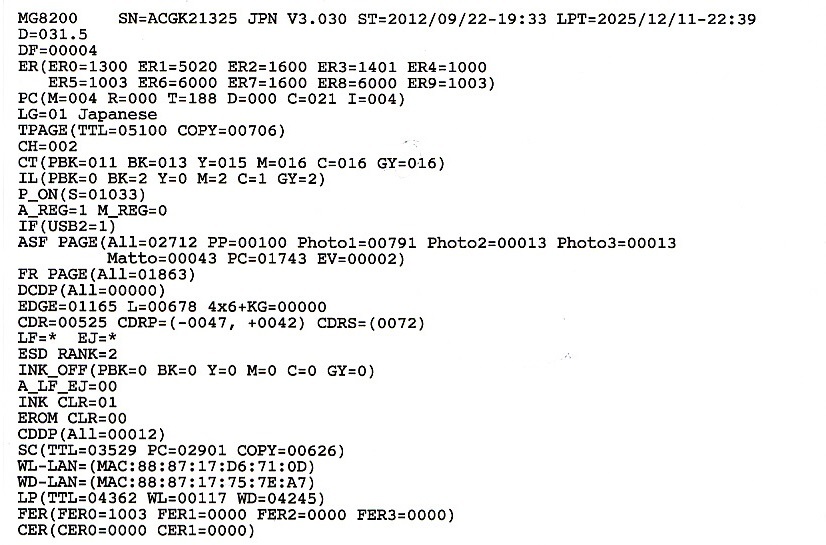 ●プリンター・ACケーブルのみです。 ●ノズルチェック印刷は正常に印刷されています。 ●外観は擦り傷があります。内側の汚れは少ないですがローラーにしみがあります。。 ●USBでのPCとの接続・上トレイ給紙・下カセット給紙・A4印刷のみ・普通紙印刷のみ・片面印刷のみ・コピー・スキャナー・CD印刷のみテストしました。他の未チェック機能については不具合があっても対処できませんのでご了承下さい。 ●累計印刷は5100枚、コピー706枚、廃インク吸収体の使用率は31.5%(D=031.5)です。 ●インクは純正インク、残量は画像を参照ください。残量は乾燥や輸送中の振動などにより画像より少なくなる場合があります。 ●発送はゆうパック送料払いです。梱包120もしくは140サイズです。 ●不具合の対応はオークション終了後10日以内です。片道送料のご負担をお願います。返品確認後に返金します。ただし、前述の機能確認以外の未チェック機能の不具合は対 いたしません。 ●オークション終了前日に再度ノズルチェック印刷を行い同封します。 落札者へ届く数日間でも到着時にヘッドクリーニングが必要な場合があります。その場合は落札者の方で対処をお願いします。 ●ご不明な点は質問して下さい。質問が多いものを記載します。即決は行いません。手渡し行いません。付属品は説明と画像に掲載してあるものだけです。領収書は発行していません。 ●セットアップCD・操作ガイドはありませんがドライバ・アプリケーション・操作ガイドはキャノンホームページからダウンロードできます。 ●以上の点をご了承の上、入札して下さい。