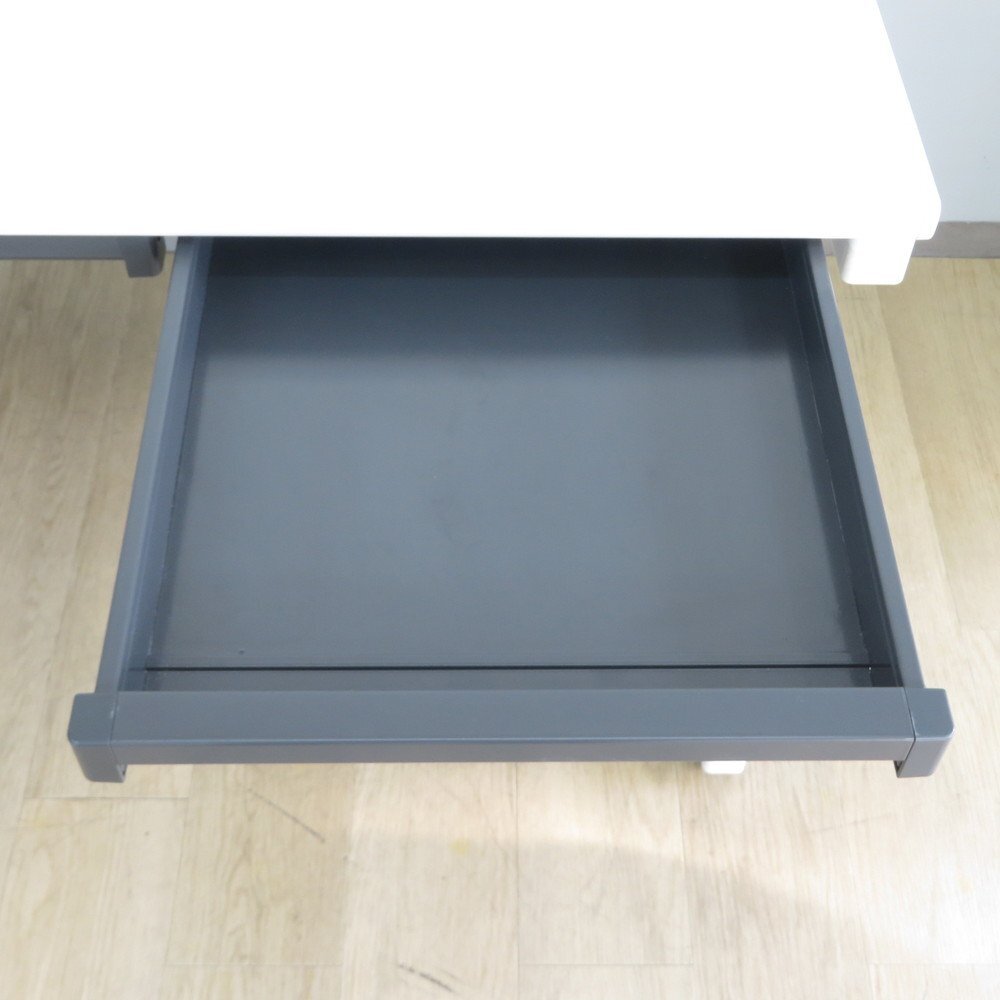 コクヨの人気オフィスデスク「ピクサ」シリーズの平机、幅1400mmの広々サイズで、事務作業やPC作業に最適なデスクです。 シンプルなホワイトカラーに加え、天板下には浅型引き出しとケーブル配線口が装備されており、オフィスワークに必要な機能をしっかり備えています。 脚部は安定感のあるL字脚デザインで、デスク下スペースを広く使えるため、ワゴンや脇机との組み合わせも自由自在。 どんなオフィス空間にも馴染みやすく、レイアウト変更や増設にも対応しやすい設計です。 中古良品としてコストパフォーマンスにも優れた一台、いかがでしょうか。 ※写真で掲載の商品そのものが届くとは限りません。複数入荷した中の1点を掲載している場合がございます。 |