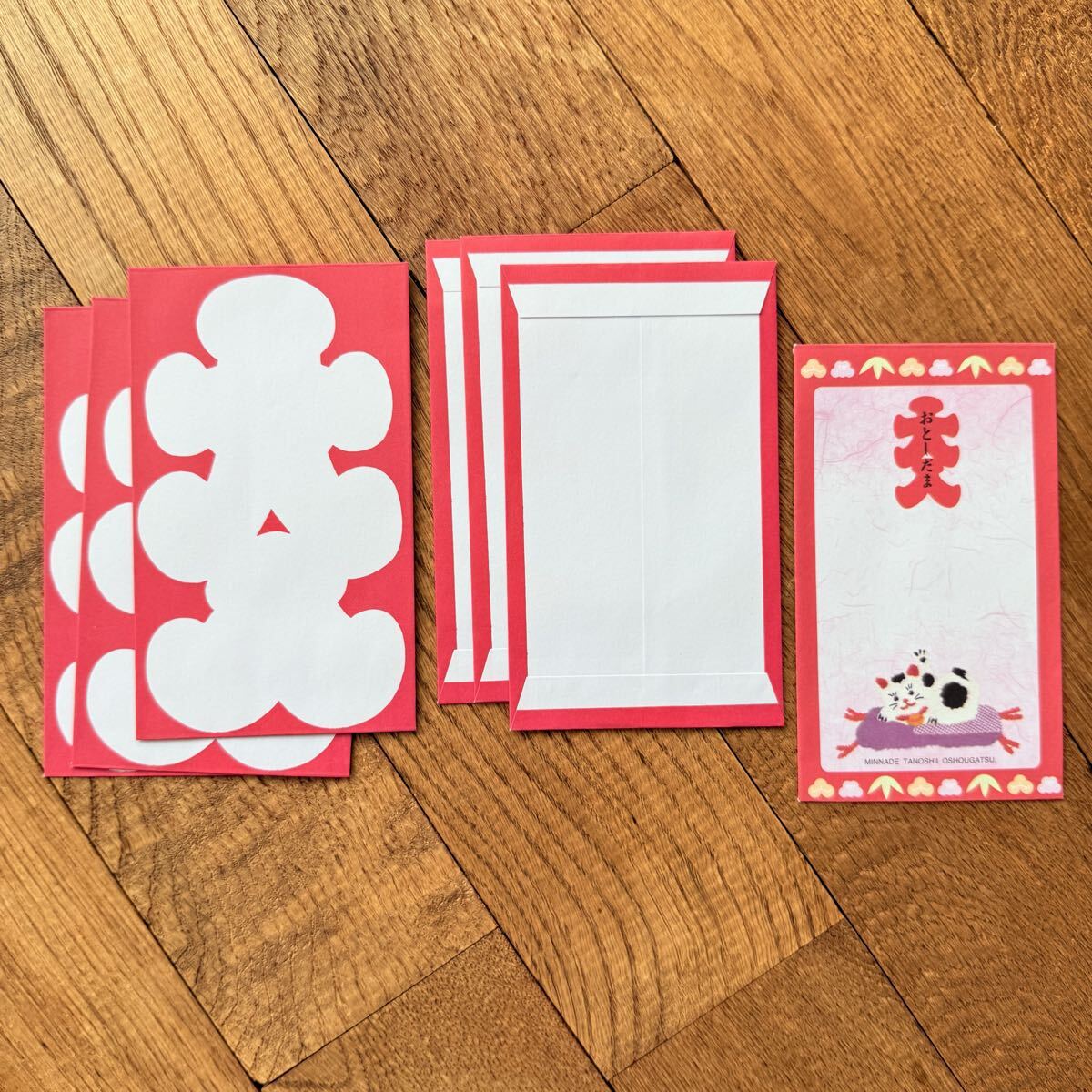 昭和レトロな雰囲気が魅力の当時のお正月用ポチ袋・水引デザイン紙ものまとめセットです。
