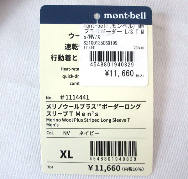 | メンズ モンベル メリノウールプラスボーダーロングスリーブTシャツ(1114441) XL 11660円相当 | |