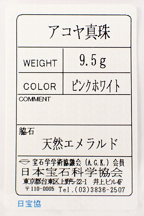 アコヤ真珠色:ピンクを帯びたクリームホワイトの色合い