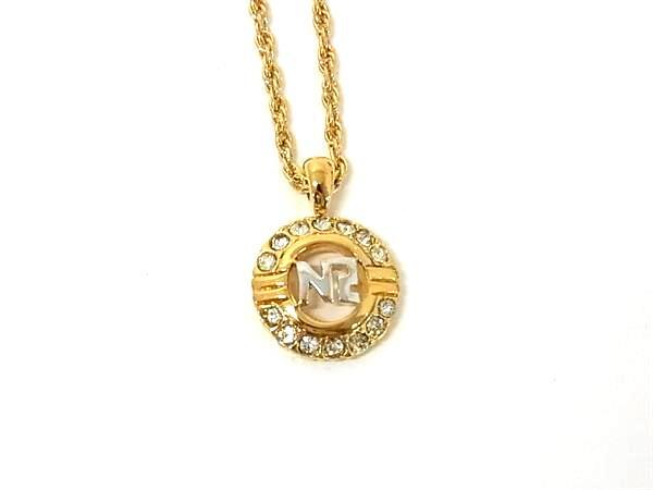 ■美品■ NINA RICCI ニナリッチ ラインストーン ネックレス ペンダント アクセサリー レディース ゴールド系×シルバー系 DK4624