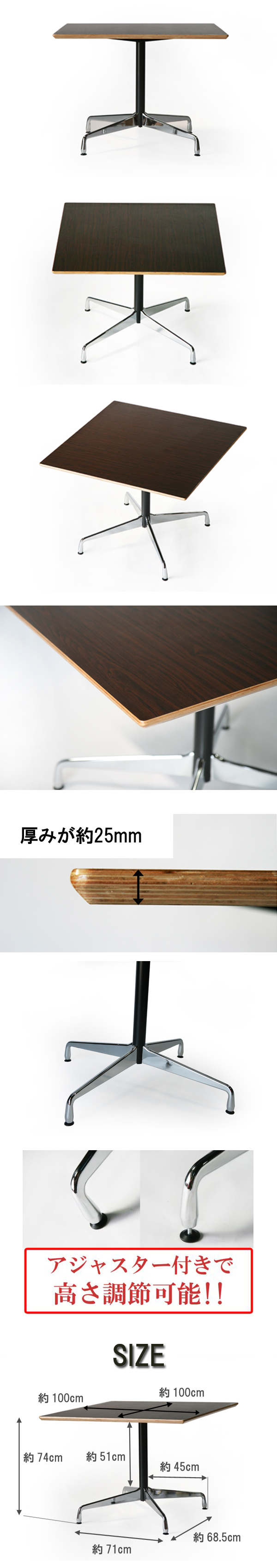 | 商品名 | 送料無料 訳あり イームズテーブル コントラクトベーステーブル コントラクトテーブル カフェテーブル W100×D100×H74 cm センターテーブル ダイニングテーブル 会議テーブル 会議用 ミーティングテーブル オフィス 会議机 テーブル 机 デスク スクエア ウォールナット TA |