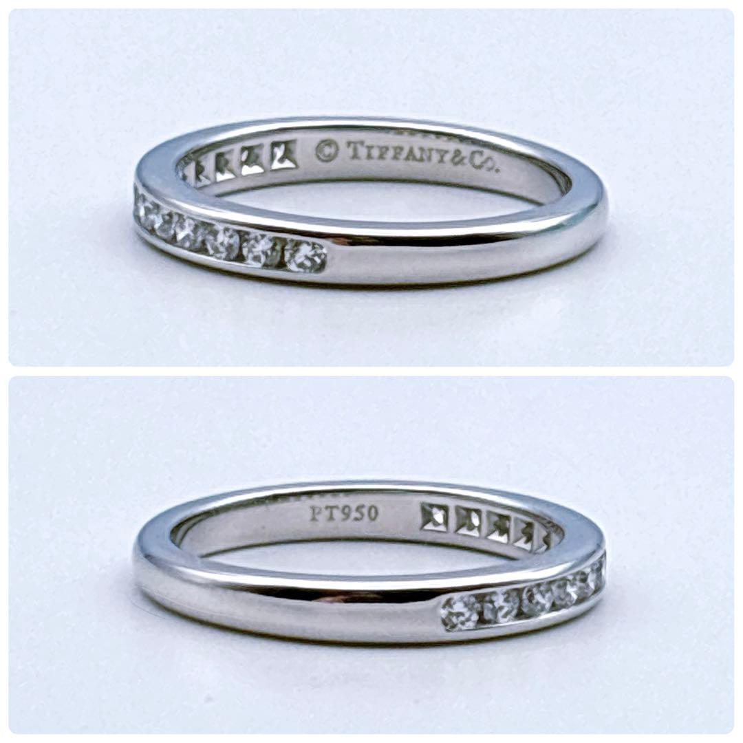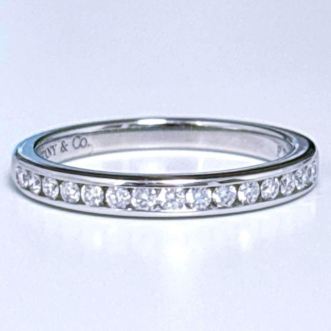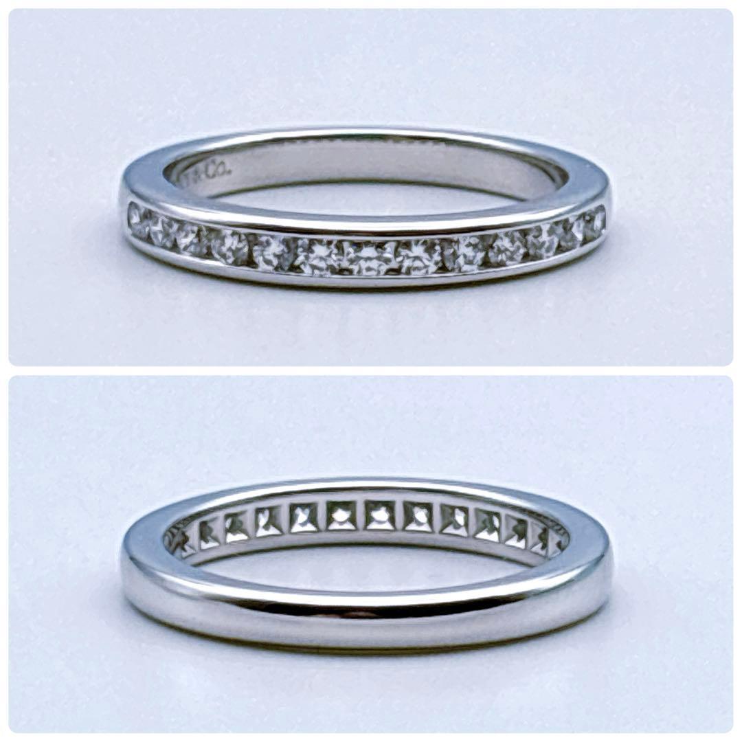 プラチナ台に、ダイヤモンドがセットされたハーフエタニティリング。 タイムレスなデザインで人気のモデルです。