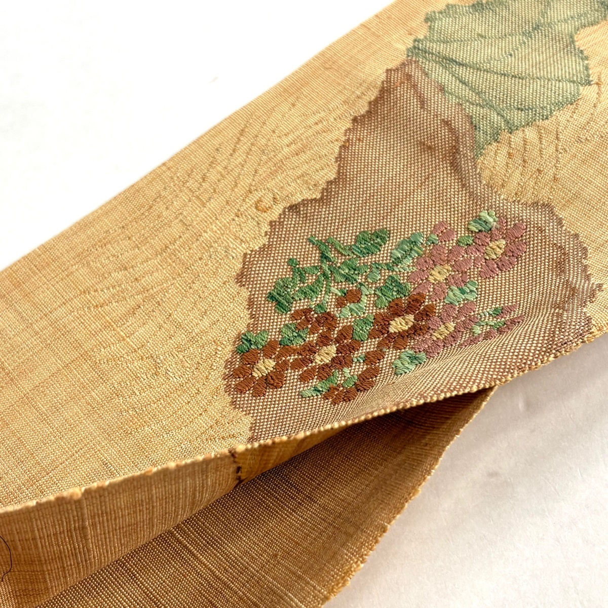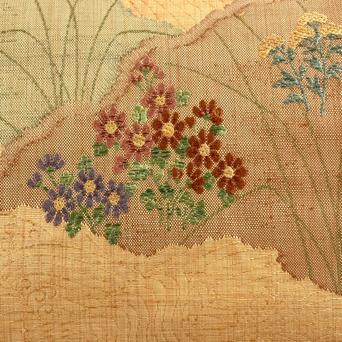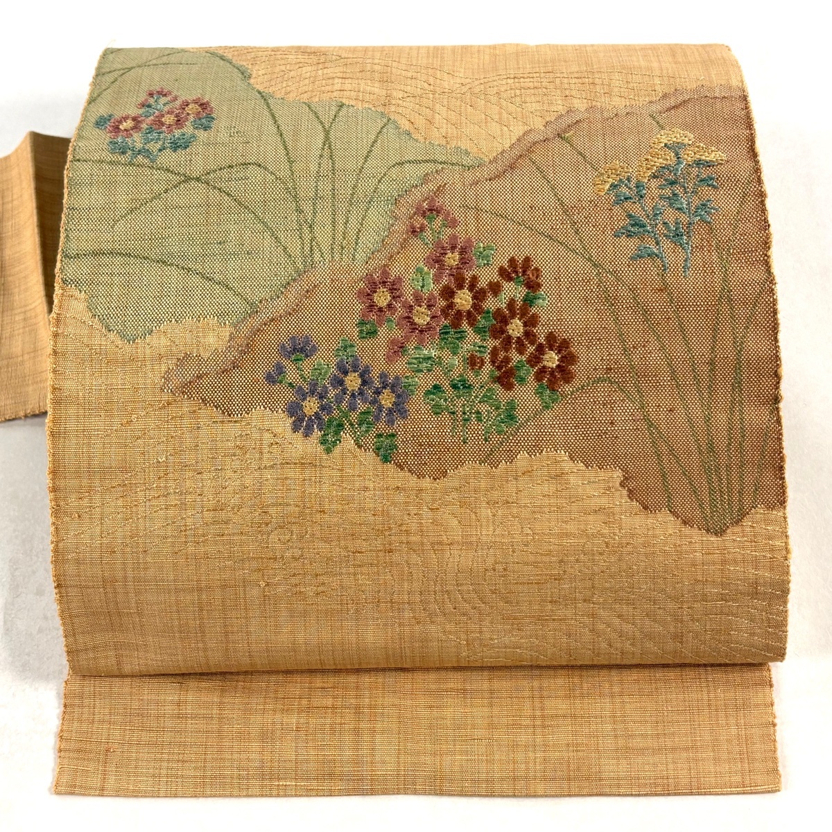 | 名古屋帯 美品 優品 紬地 草花 波頭 唐織 ベージュ 正絹 【中古】 |