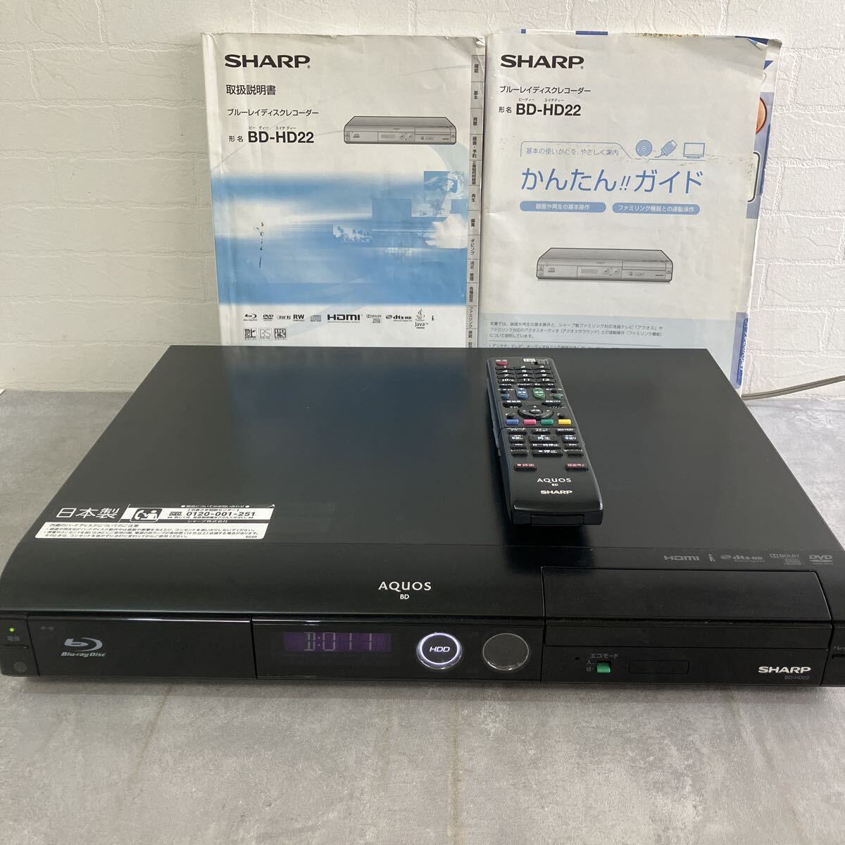 中古品 ブルーレイディスクレコーダー SHARP シャープ BD-HD22 AQUOS アクオス 2009年製 日本製 B-CASカード・リモコン付属 通電確認のみ