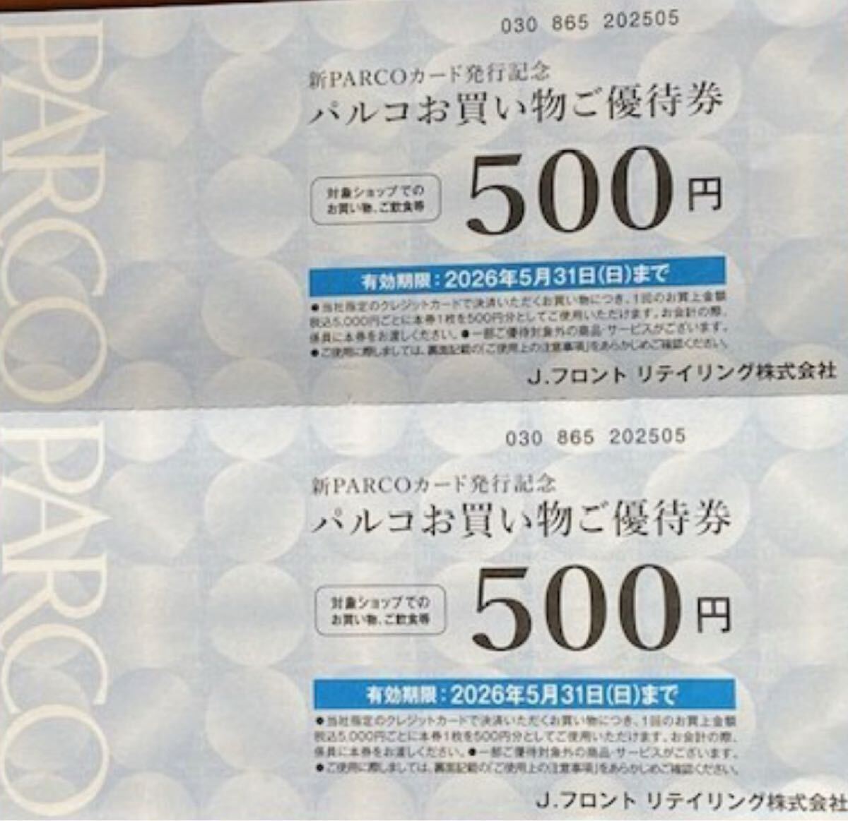☆PARCO パルコお買い物ご優待券 2枚☆です。