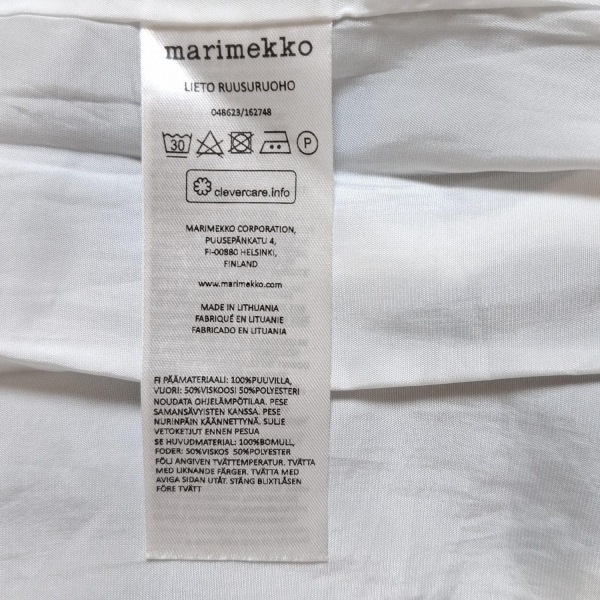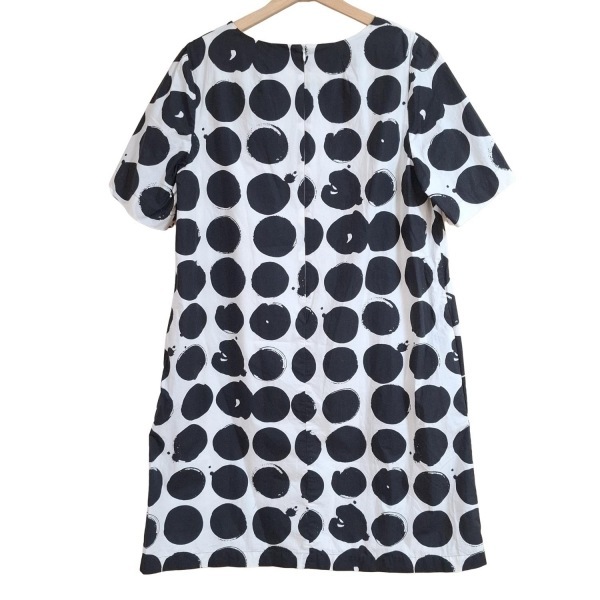 マリメッコ marimekko サイズ42 L - 白×黒 レディース クルーネック/半袖/ひざ丈 ワンピース