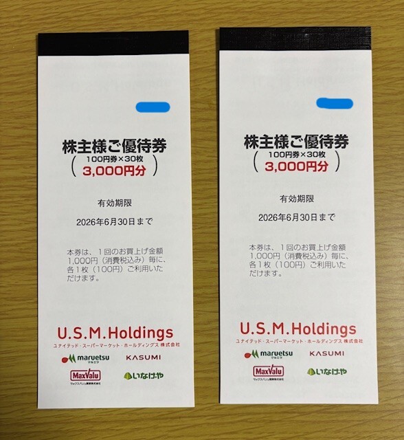 ユナイテッドスーパーマーケット 株主優待 6000円分(100円×60枚)USMH マックスバリュ  送料無料