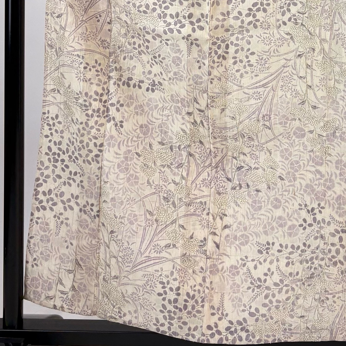 | 小紋 秀品 紬地 萩 葉と実 ベージュ 単衣 身丈157.5 裄丈63 S 正絹 【中古】 |