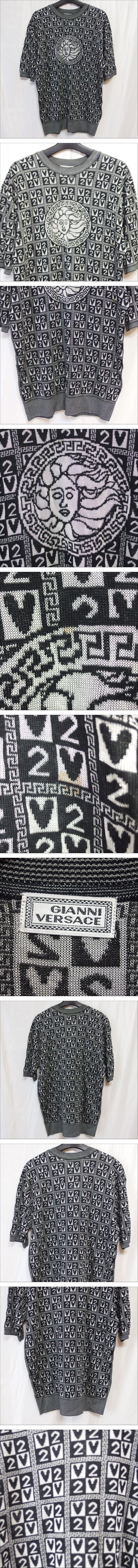 GIANNI VERSACE◆ジャンニ・ヴェルサーチ メンズ 半袖 ニット セーター 総柄(ブラック)身幅54㎝・着丈64㎝・難有り◆USED R | |||