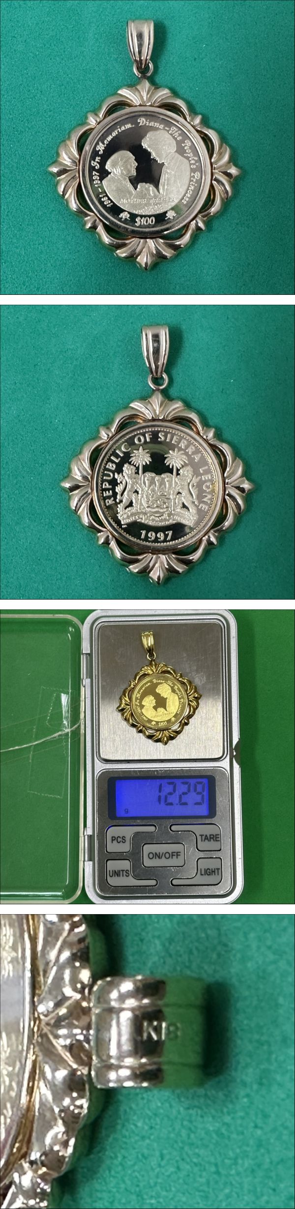 | 【ペンダントトップ】 ダイアナ妃 マザーテレサ 記念硬貨 100ドル 金貨 コイン シエラレオネ K24 純金 (枠 K18)【中古】 | ||