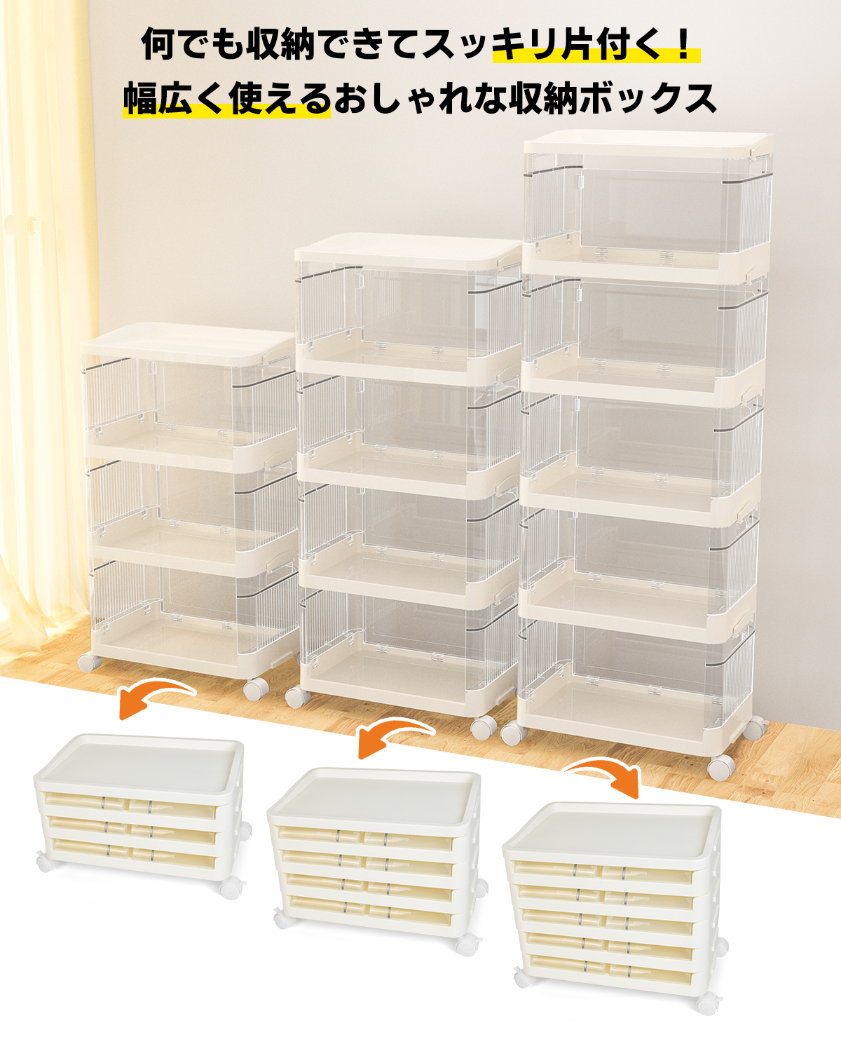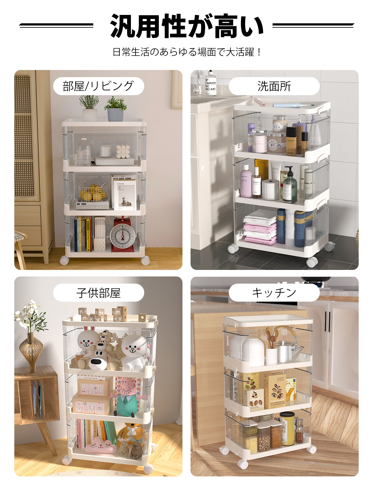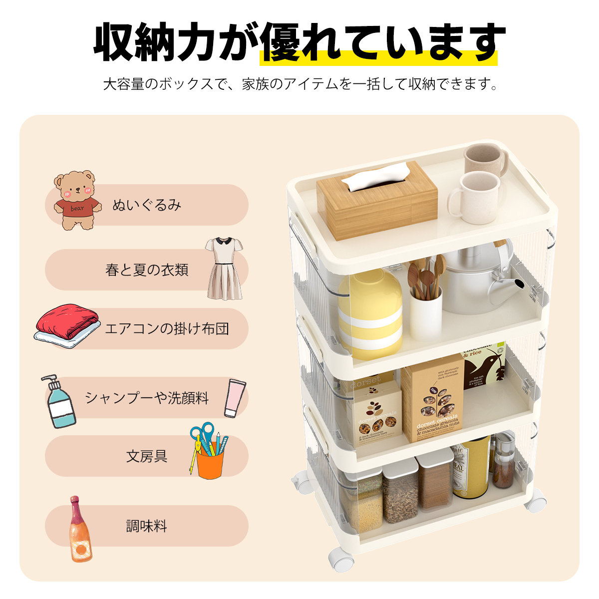 収納ワゴン キッチンワゴン 3段 4段 5段 前開き キャスター付き ベビーワゴン 引き出し 収納棚 小物収納 組立簡単 大容量 敬老