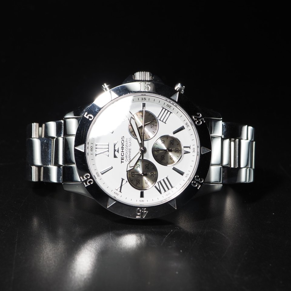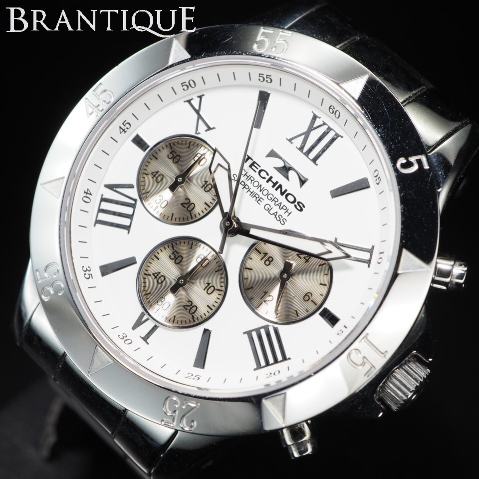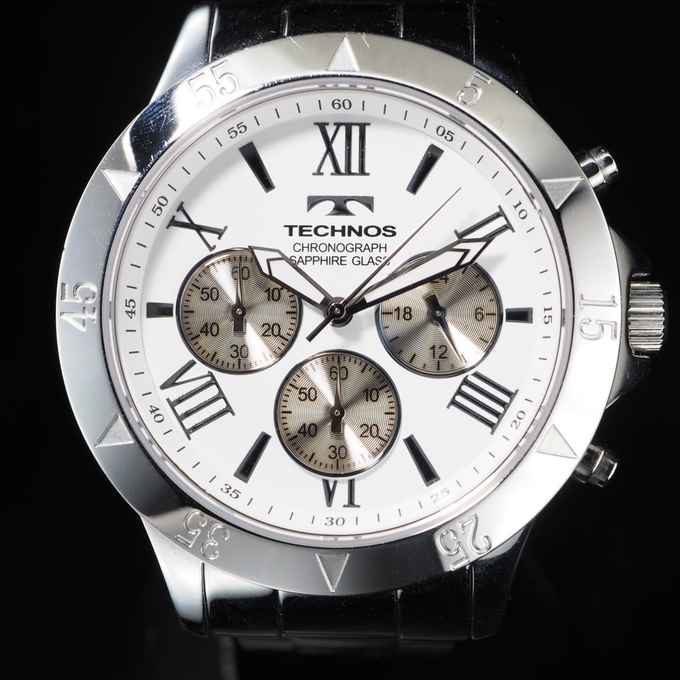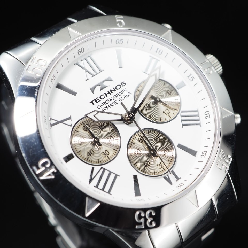【即決あり】 ◆美品◆ TECHNOS テクノス SS QZ クロノグラフ T4274 白 文字盤 USED 稼働 メンズ 腕時計 「26754」