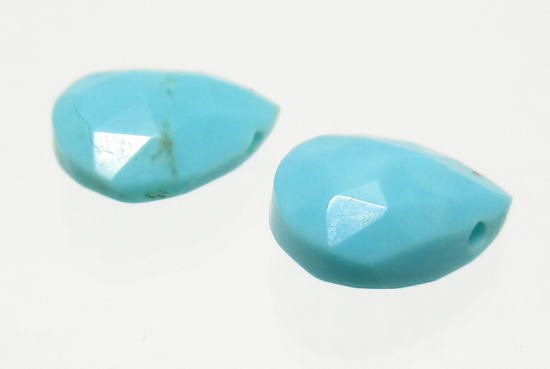 総評:ターコイズは近年、高価になっており、入荷が難しくなりましたが、こちらは人気の明るいターコイズブルーがキレイでインド加工ですが状態も安定しているものです。カット系のこの形系のものは大変希少です。個体差があり、色目やネットを含むインクルージョンもあるものもありますので予めご了承ください。天然無着色ですが、ターコイズ自体柔らかいため、樹脂浸透加工を施して、耐久性をアップしております。また、天然石ですので完璧ではありません。あとは天然石の特性上をご確認ください