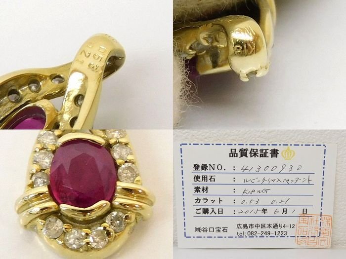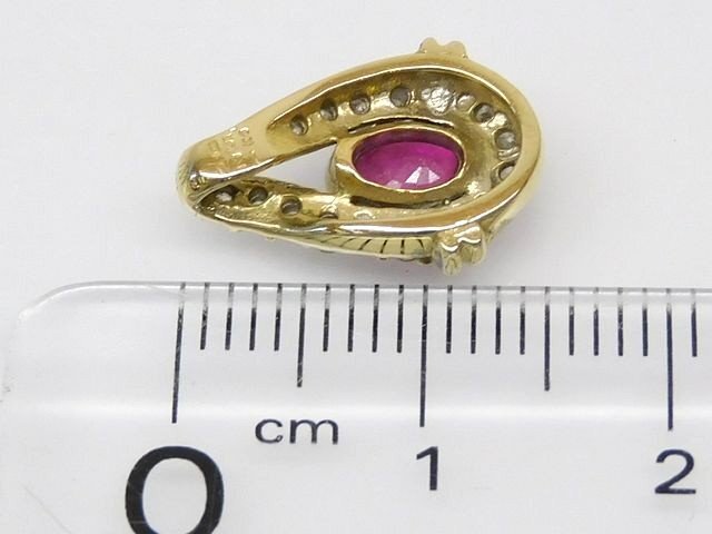 K18 ルビー 0.53ct ダイヤ 0.21ct ■ ゴールド ペンダント トップ チャーム レディース