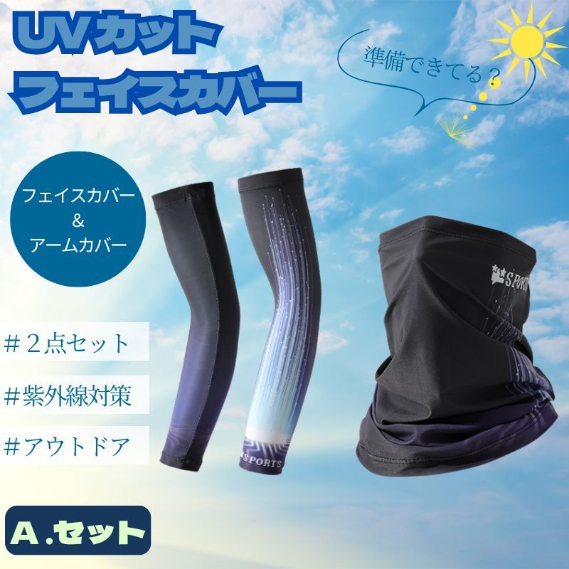 FG-152-A【送料無料】フェイスカバー アームカバー お得2点セット UVカット 冷感 フェイスマスク 紫外線対策 釣り用 アウトドア スポーツ