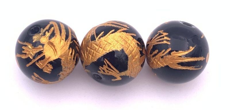手作り!オリジナル!天然石オニキス金彫り青龍&ガーネット&ラピスラズリのストラップ