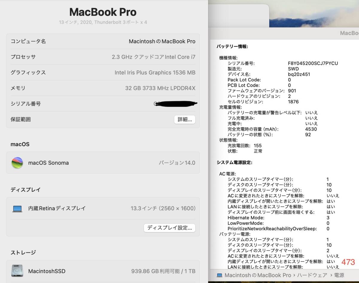 [美品]Apple MacBook Pro 13inch 2020/Core i7 2.3GHz/メモリ32GB/SSD1TB/Windows11/Office 2024/473