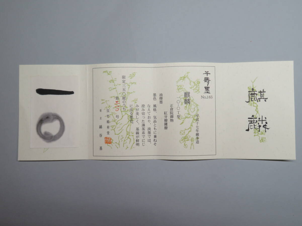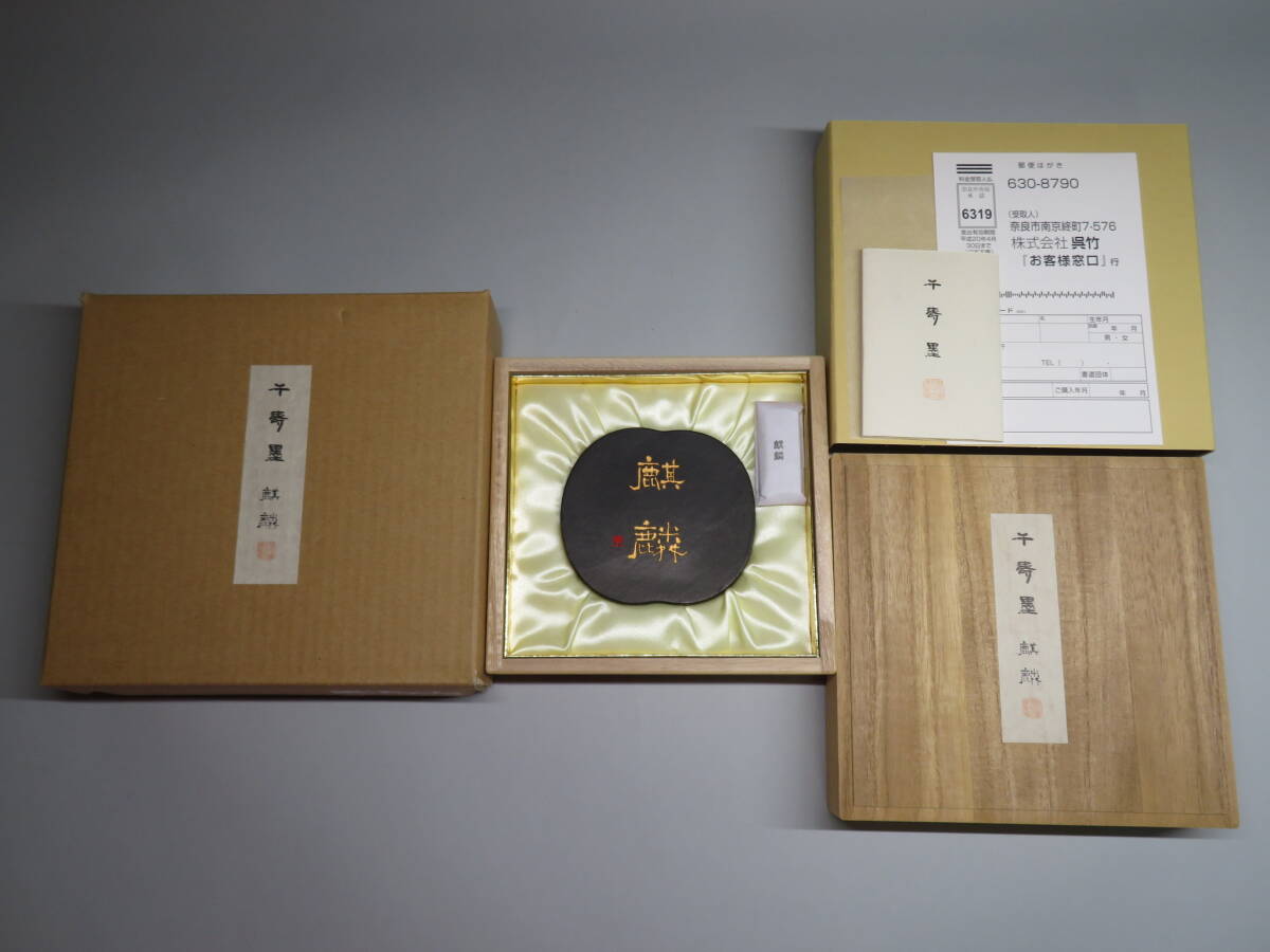 | 貴重な墨 未使用品 呉竹精昇堂 千寿墨 麒麟 350個 限定 正倉院御物 古墨 唐墨 二重箱 | ||