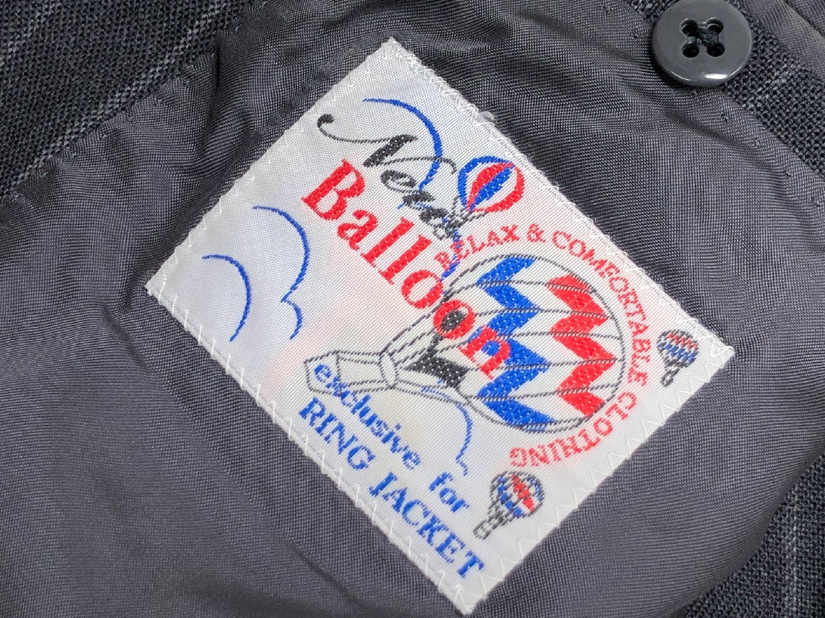 超美品【RING JACKET リングヂャケット】ニューバルーン 3B段返り スーツ (メンズ) 48/46 グレー ストライプ柄 RT020S07B ◇32RMS2066◇