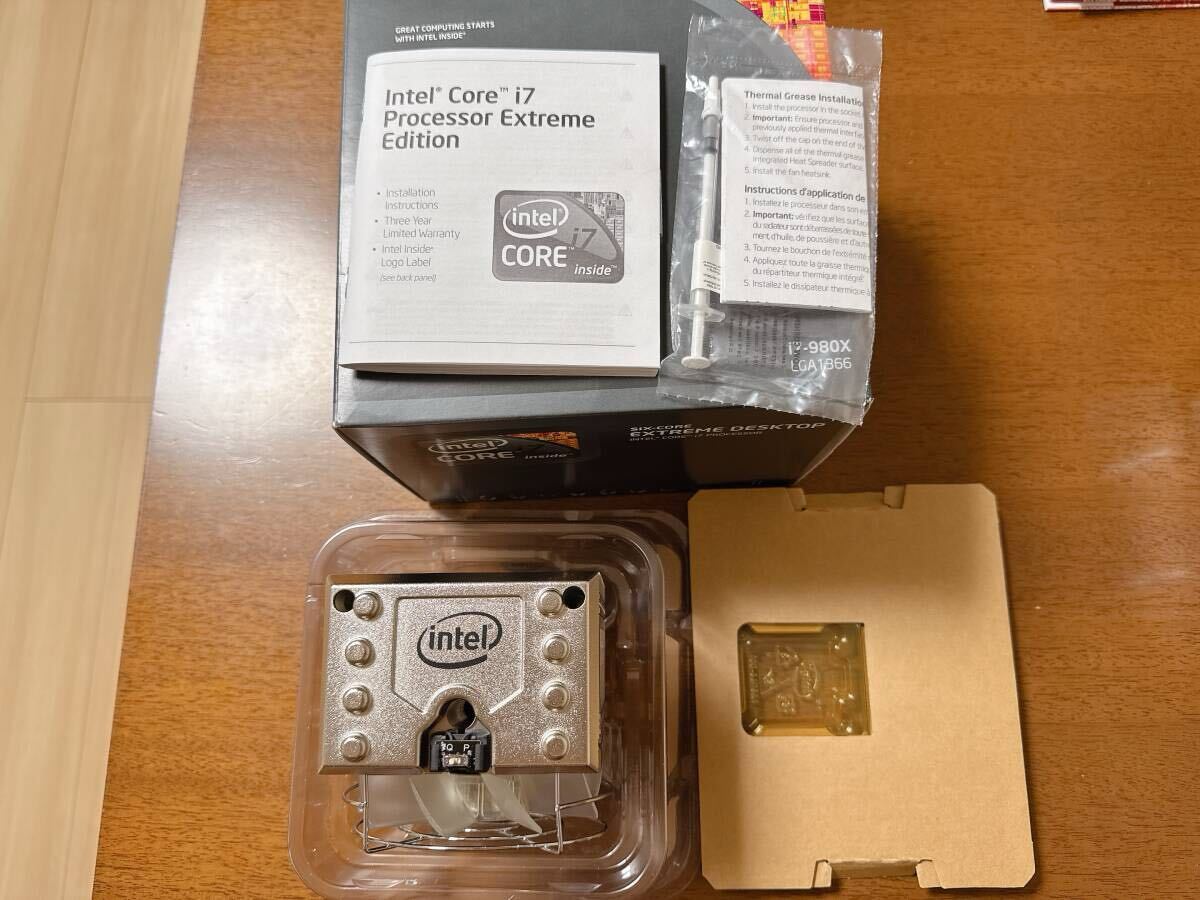 状態は、i7-980X付属の純正CPUクーラーで取り付けた形成の無い状態だと思います。フィルムが?がされていない状態です。箱などは保管に伴い痛みや経年劣化が見られます。付属品は写真に写っているものがすべてとなりますので、確認をお願いいたします。「CPU」は付属しませんのでご注意ください。