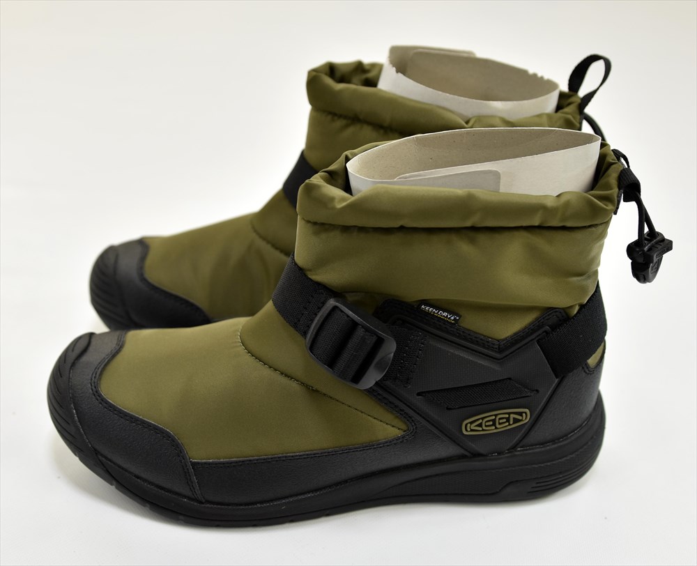 ・リサイクルPETを使用した保湿素材「KEEN WARM」を100g使用、KEEN独自の防水透湿素材「KEEN DRY」を採用しています。-4°F/-20℃対応で、防寒対策もしっかりされています。