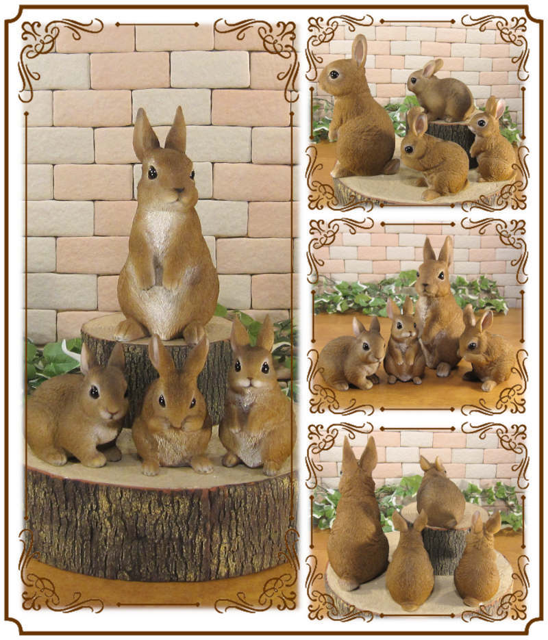 置物 動物 可愛い うさぎ ラビット ファミリー 4体セット ウサギ オブジェ ガーデン インテリア 店舗装飾 カウンター