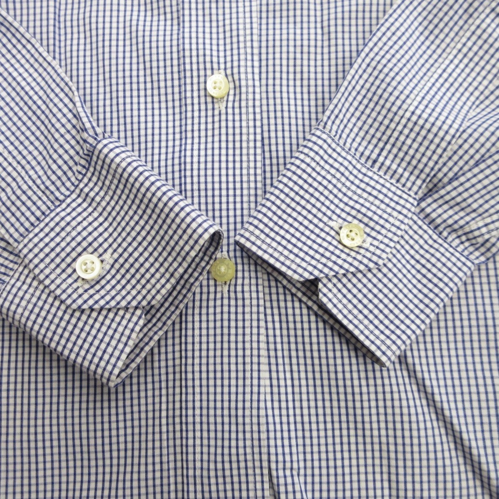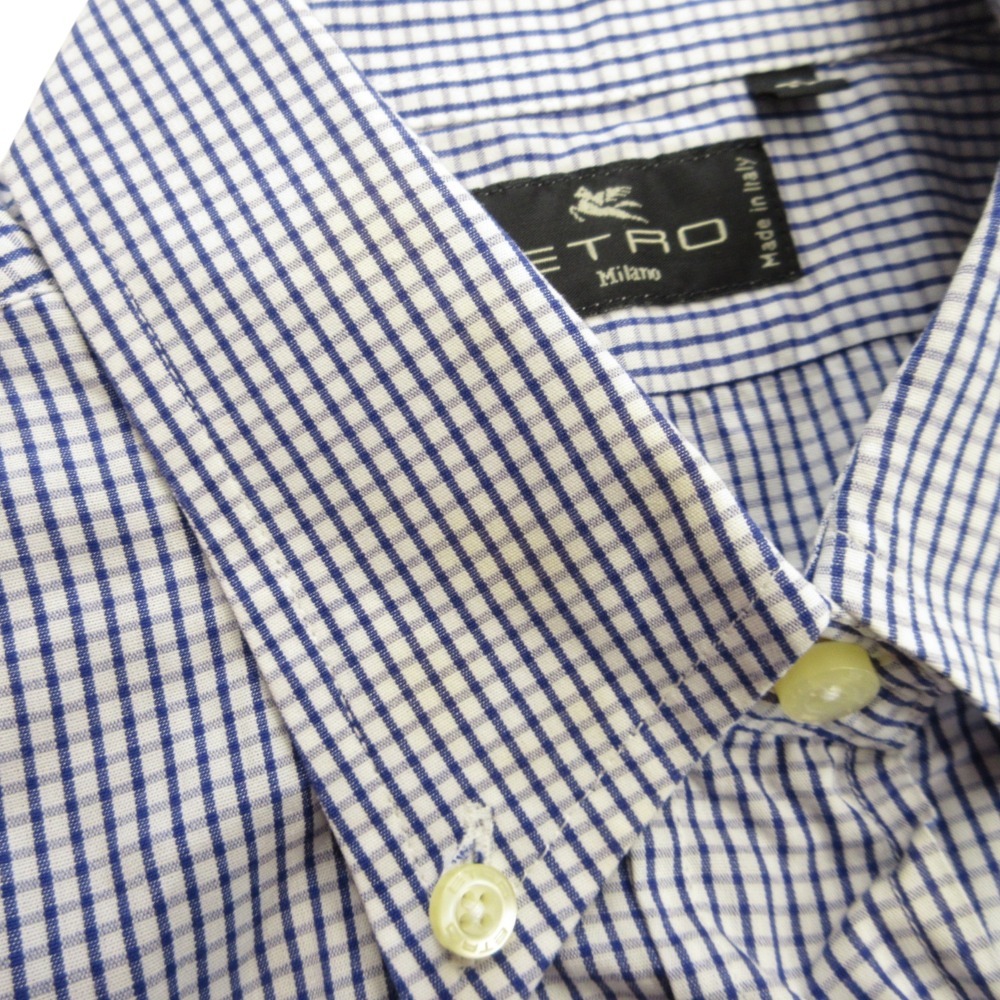 商品名:ETRO エトロ ギンガムチェック ボタンダウン シャツ ブラウス カットソー ロゴ 刺繍 40 青 ブルー 白 ホワイト
