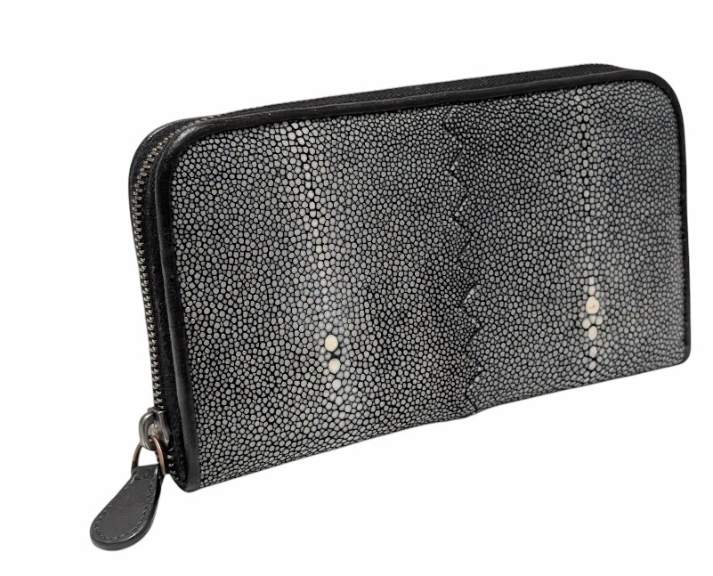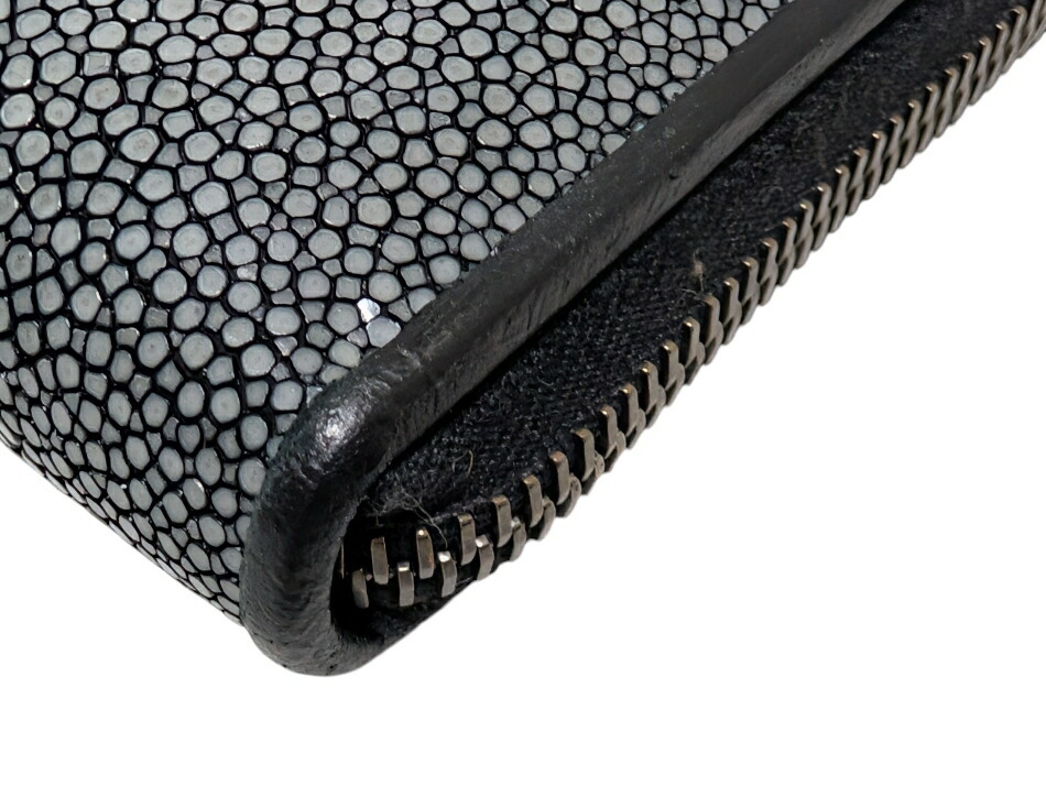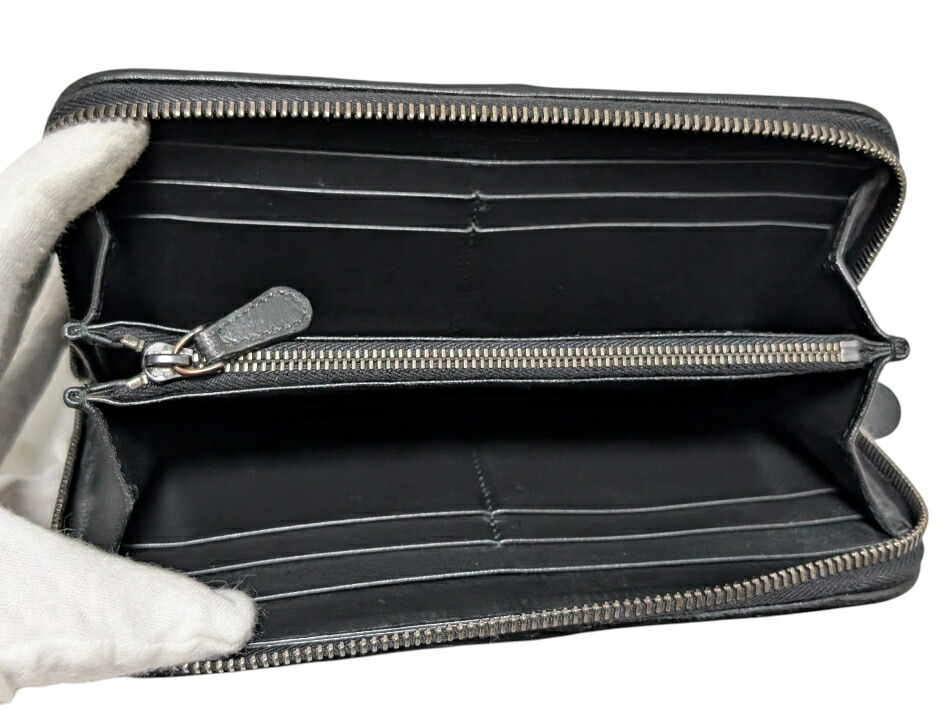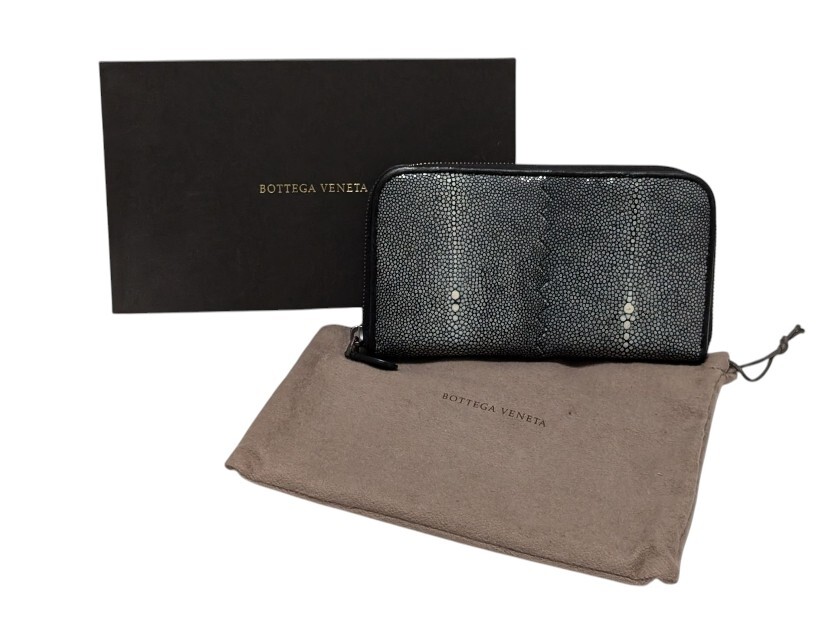 ボッテガヴェネタ 長財布 ガルーシャ レザー ラウンドファスナー ブラック スティングレイ エイ革 メンズ 黒 【中古】