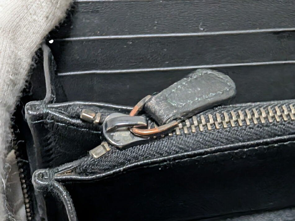 状態・・・ パイピングレザーに少々のスレ箇所が御座います。メインファスナーとコインケース部のファスナートップ部に色剥げ箇所があります。内部はカードポケットに開きも無くコインケース内部にも目立った汚れはありません。内部のマチ部分のレザーに一か所折れクセが御座います。内外ともに目立ったキズや汚れはなくコンディションは良好です。