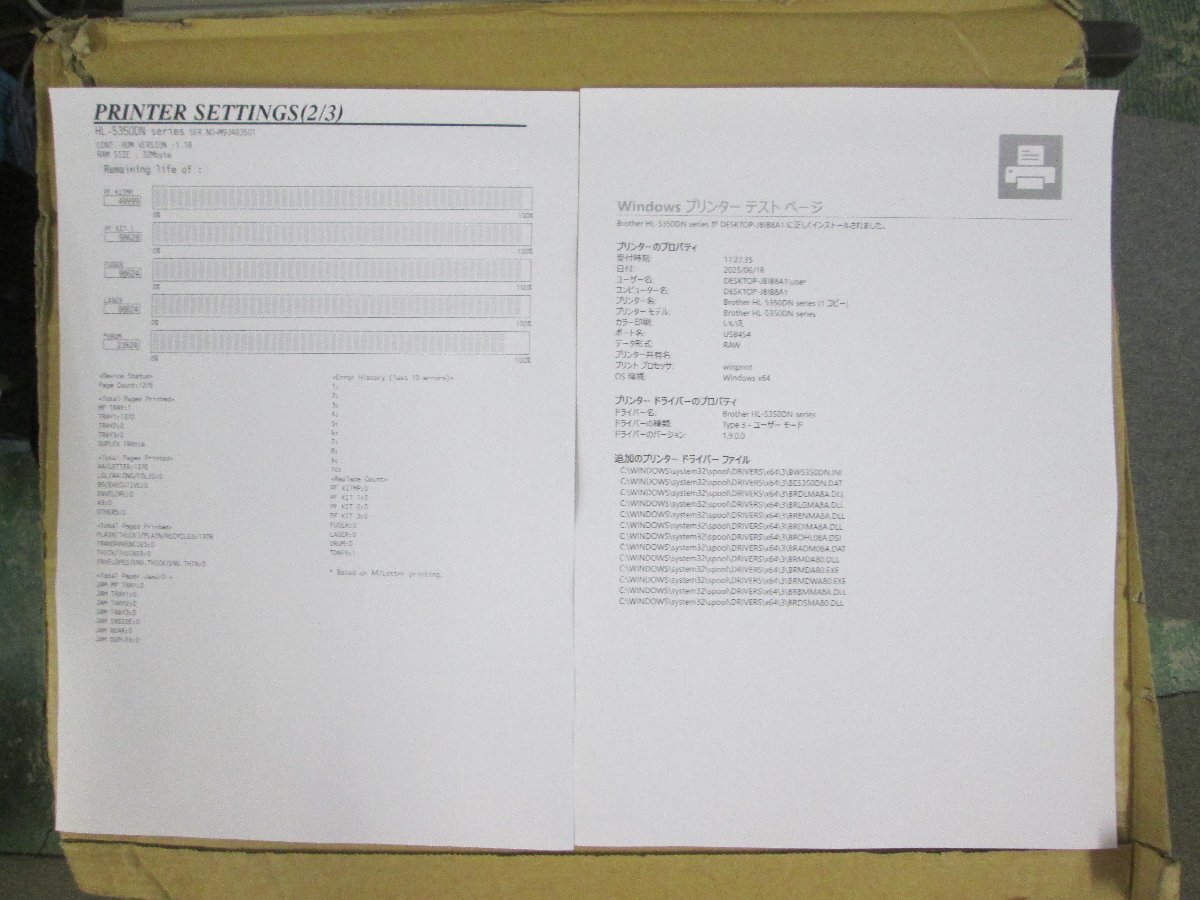 標準記録紙トレイ、多目的トレイ印刷動作確認済み。 連続印刷動作確認済み。 自動両面印刷動作確認済み。 USB、LAN、パラレル動作確認済み。 |