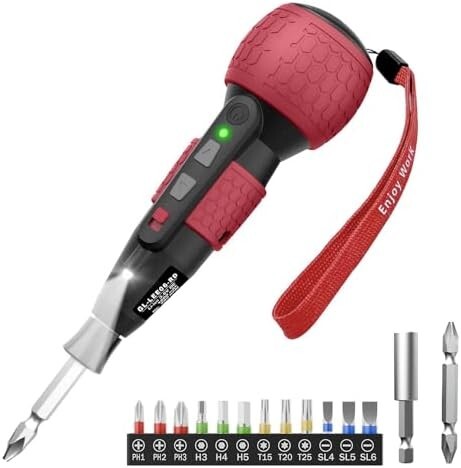 Yacooda 電動ドライバー 小型 強力 トルク3段階調整 【高い同心度・ビット振れ軽減】 電動4N.m 手動12N.m USB-C充電式 高輝度LEDライト 軽量 DIY 操作簡単 女性/初心者対応 電動ドリル ペン型 父の日 誕生日プレゼント レッド