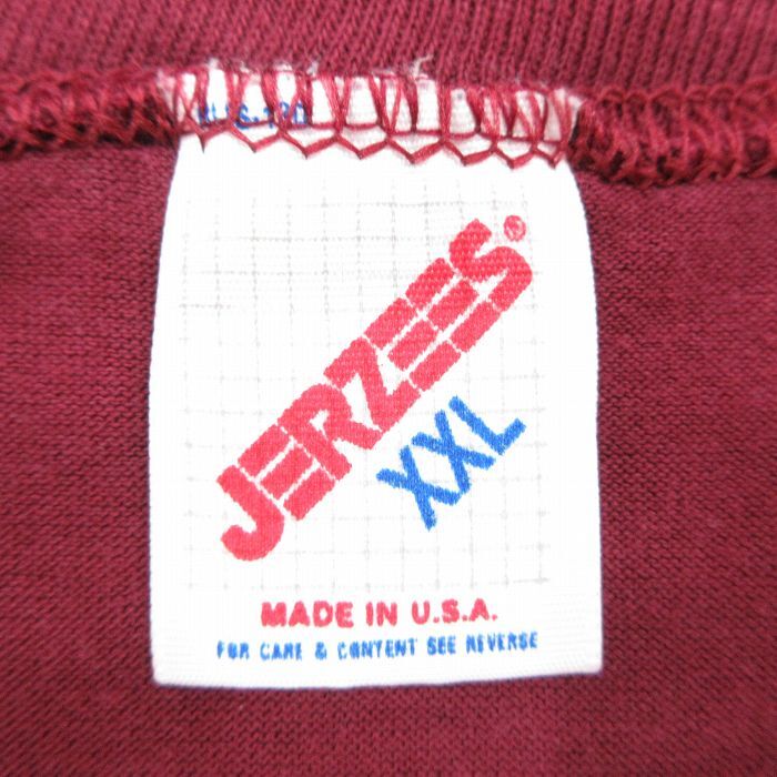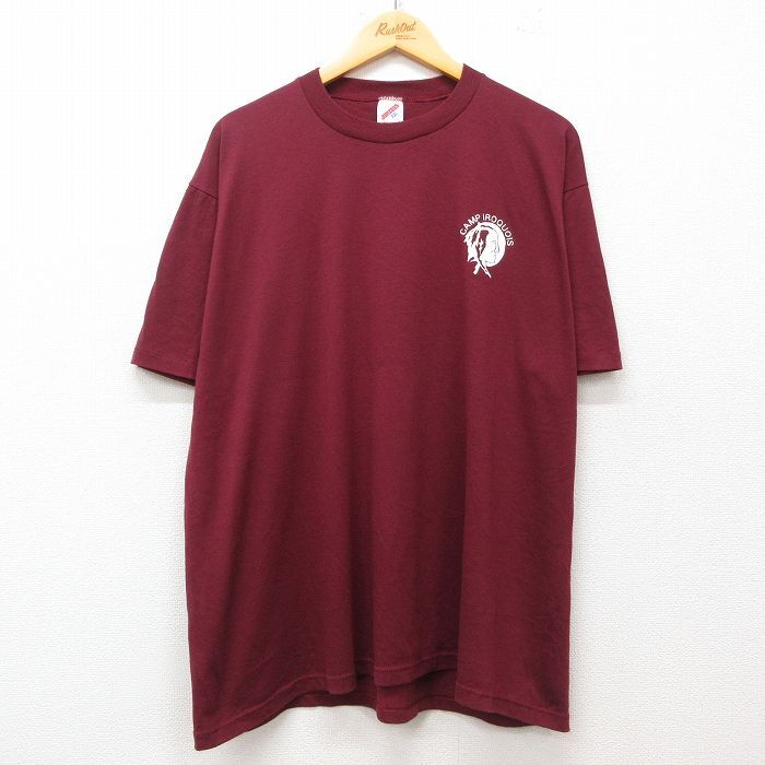 【商品名】 XL★古着 ジャージーズ 半袖 ビンテージ Tシャツ メンズ 80年代 80s IROQUOIS 大きいサイズ クルーネック USA製 エンジ