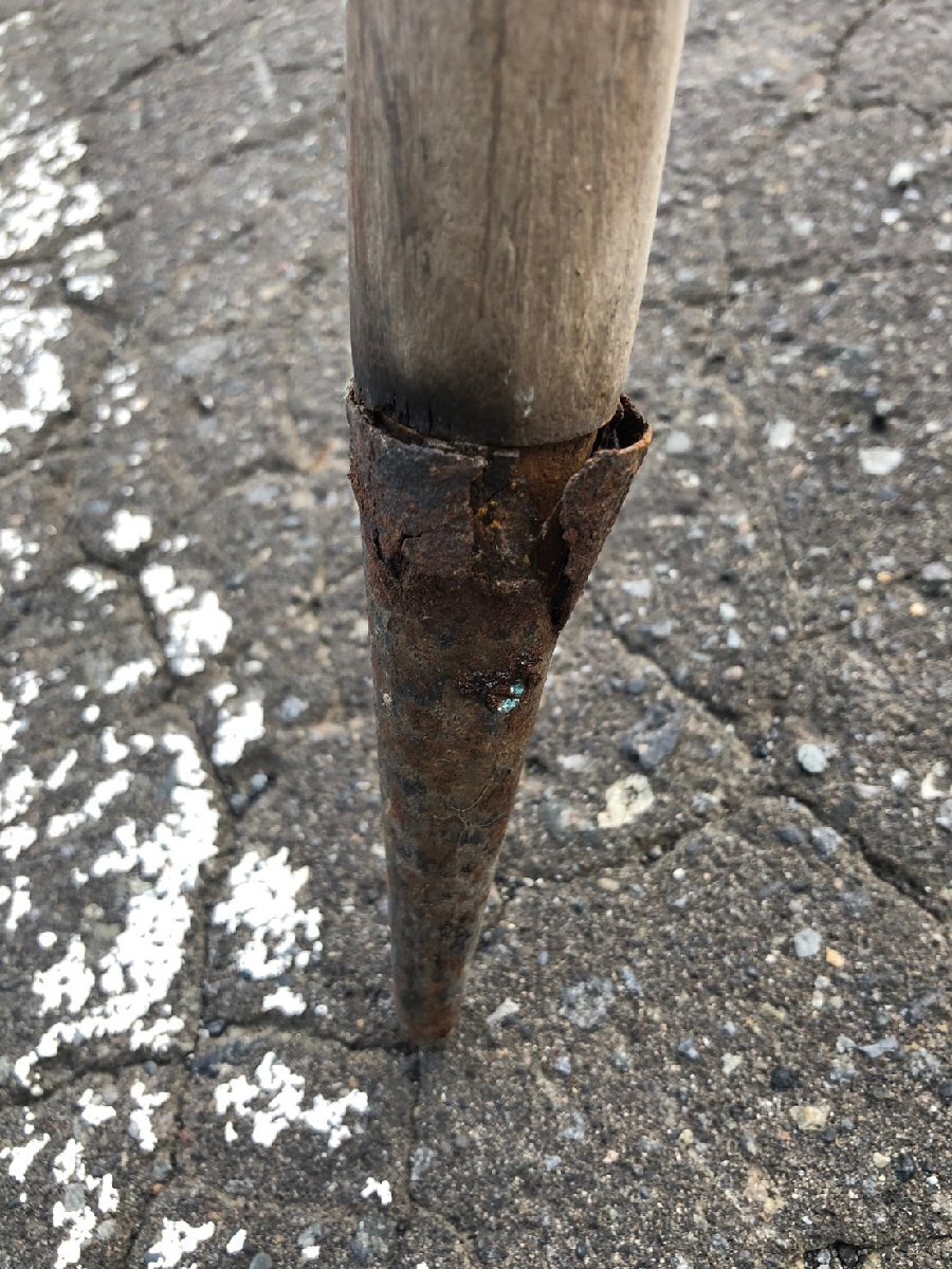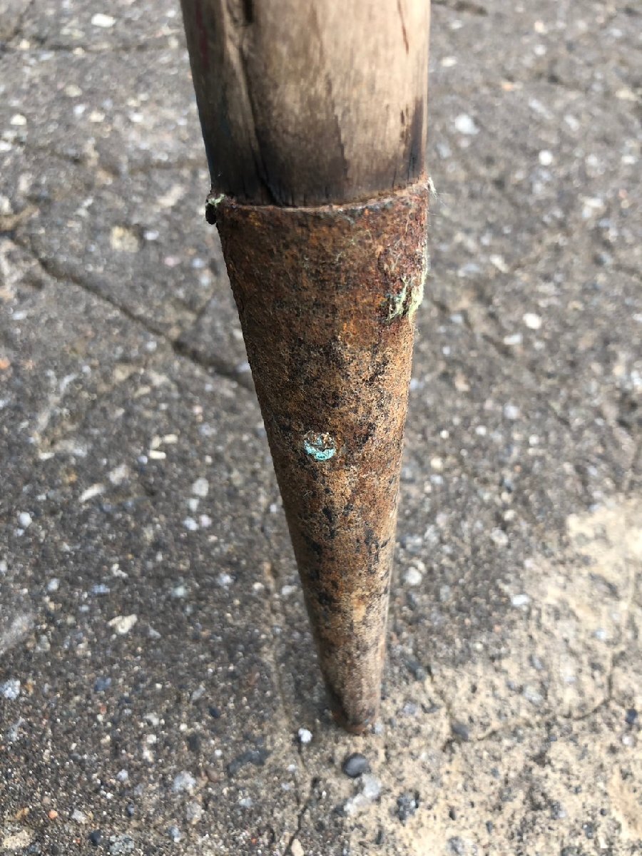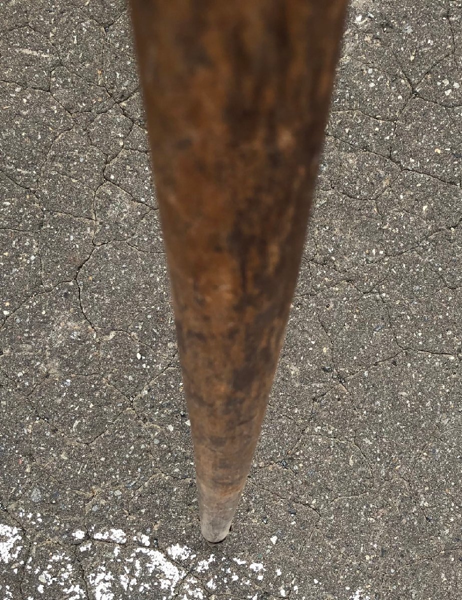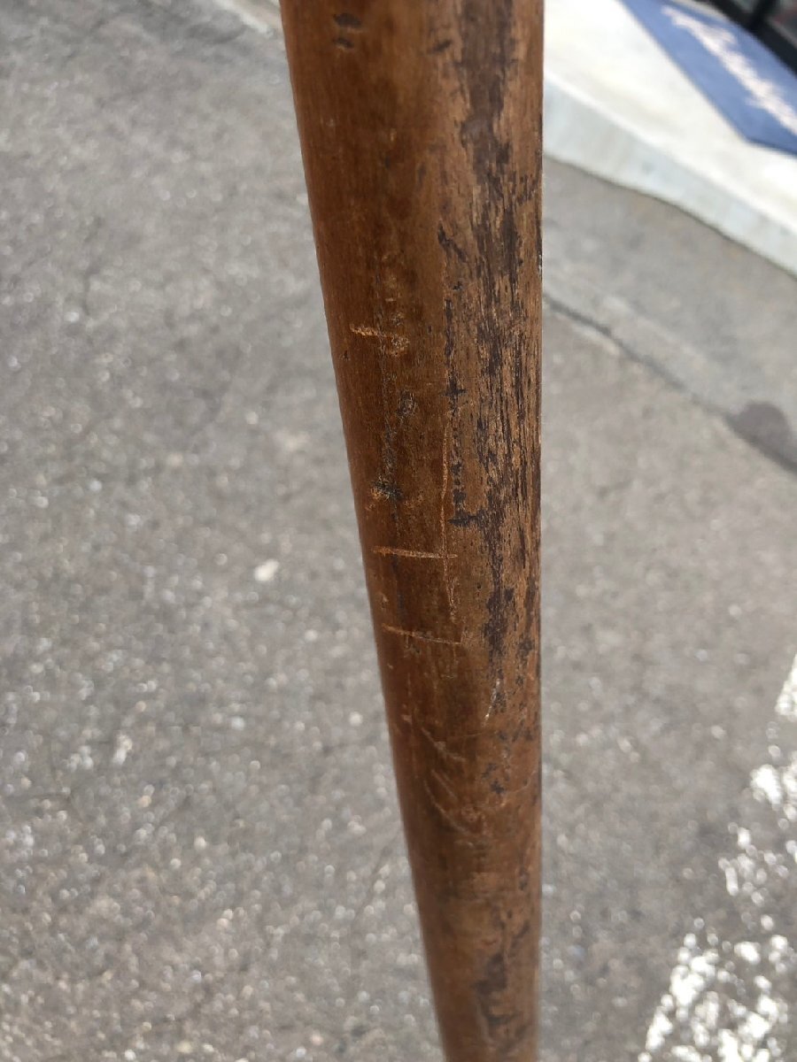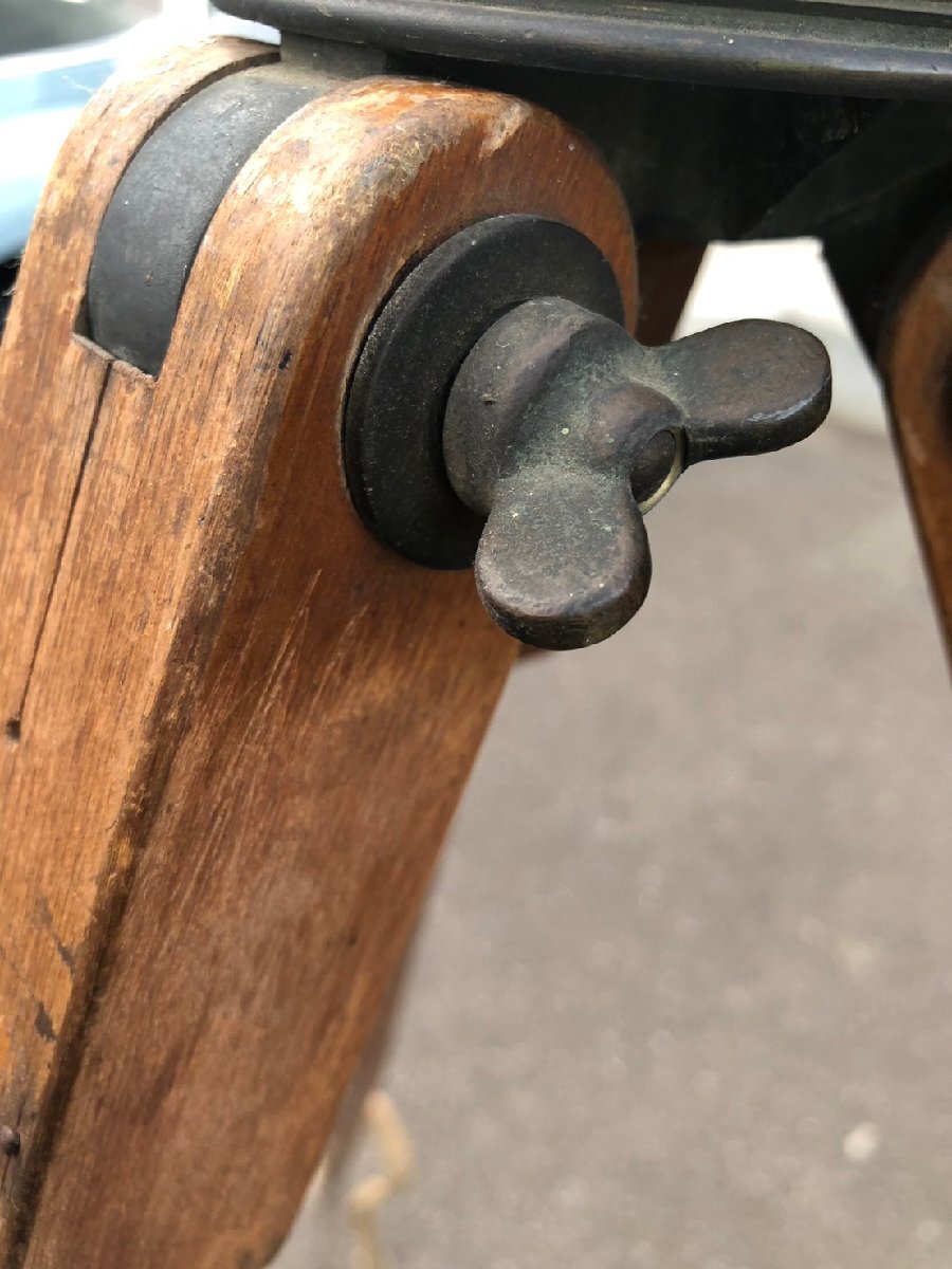 画像ではわかりずらいですが脚が少し曲がっております。元々か曲がってきたかは当店ではわかりかねますのでご了承ください。