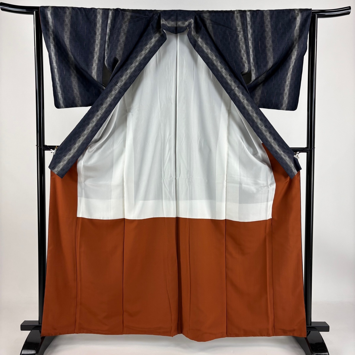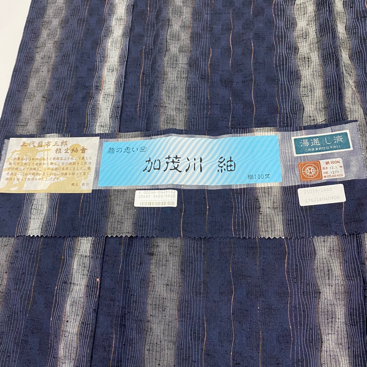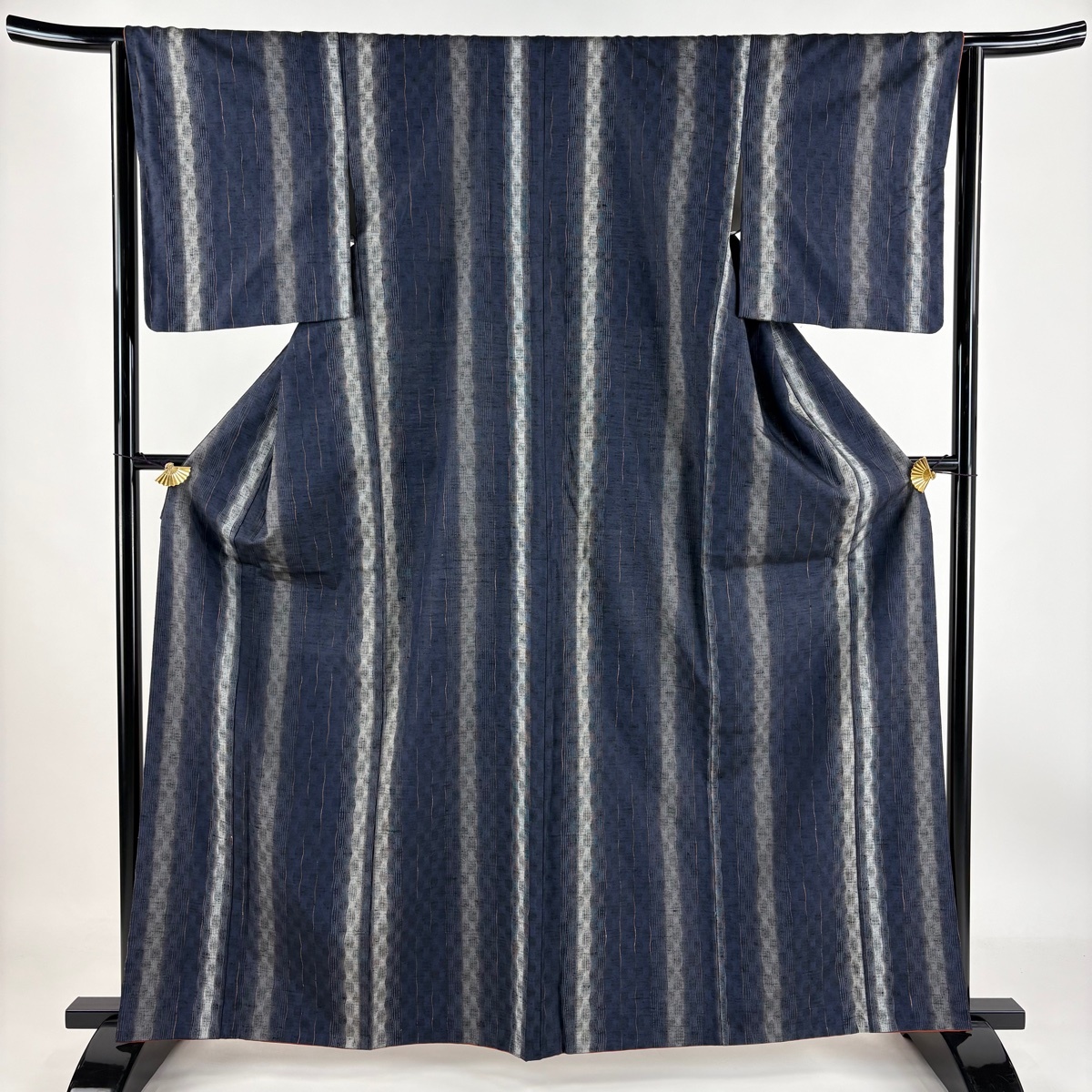 | 紬 美品 秀品 落款 三代目 市三郎 よろけ縞 紺色 袷 身丈162.5 裄丈64 M 正絹 【中古】 |