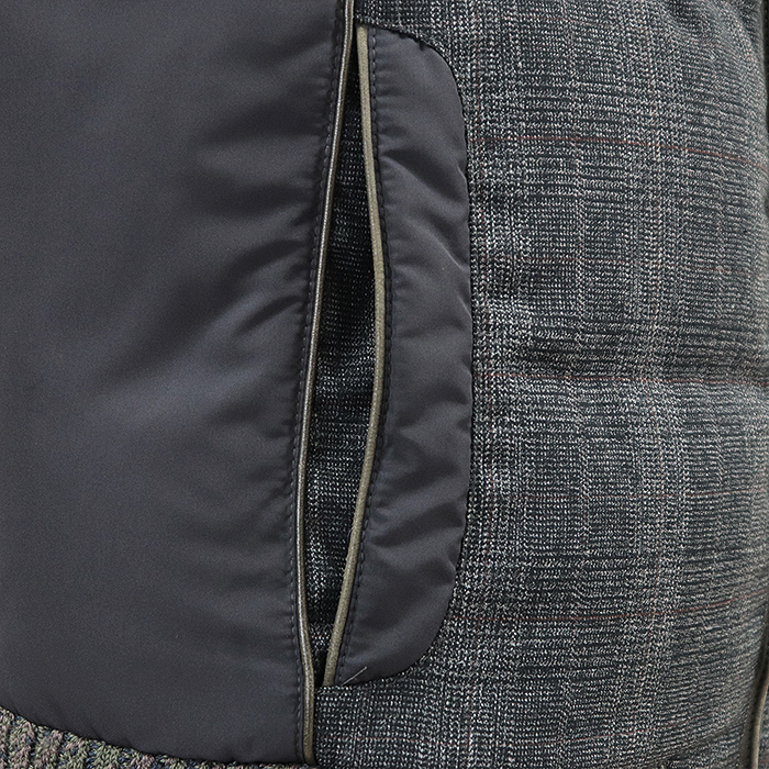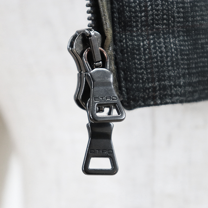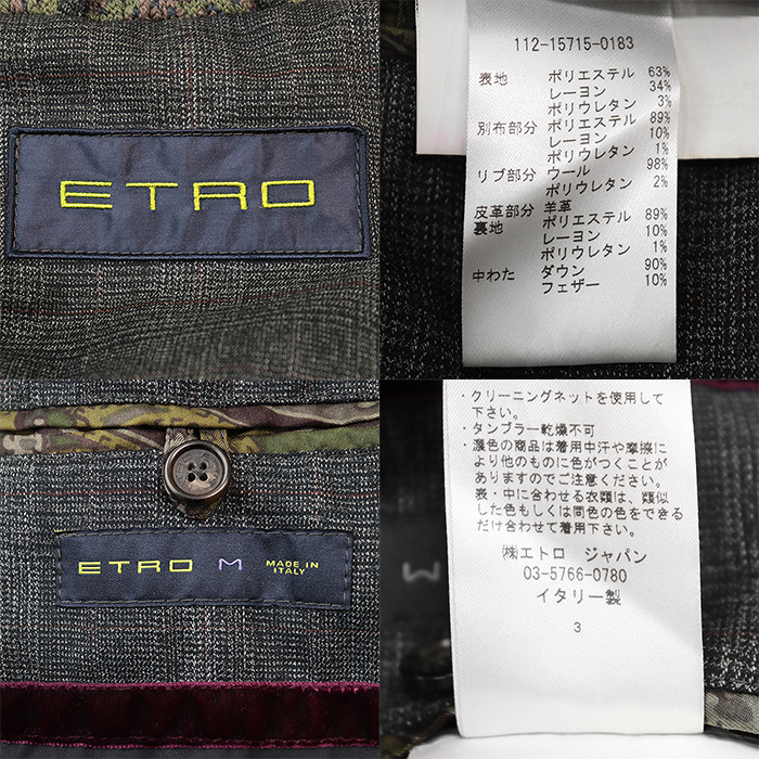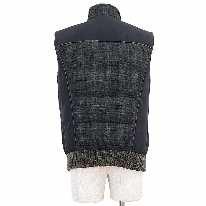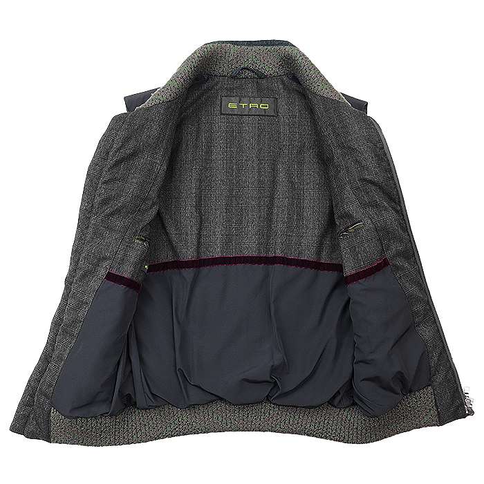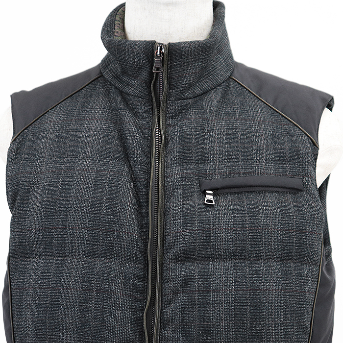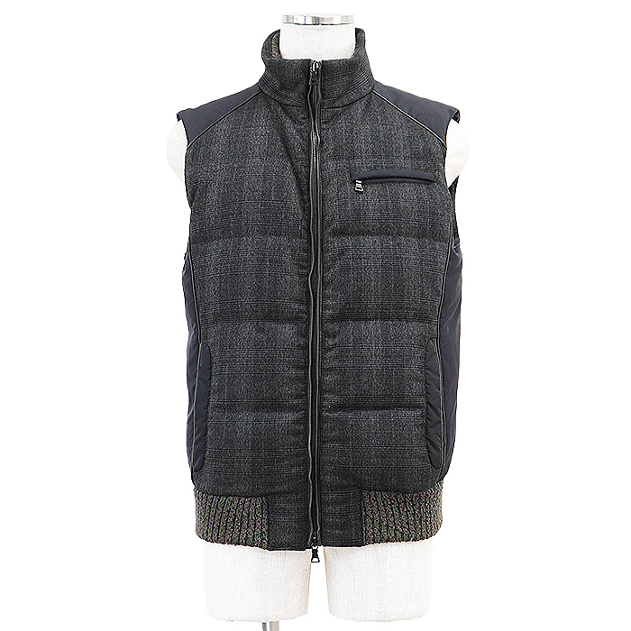 【SALE】ETRO エトロ ダウンベスト グレンチェック シグネチャー ロゴ 刻印 ジップ ジレ アウター メンズ M チャコールグレー系 総柄 伊製