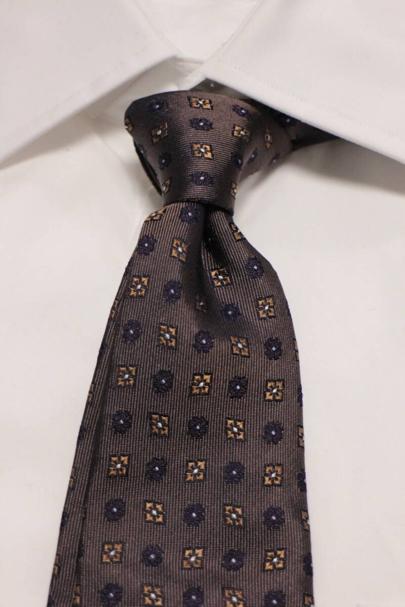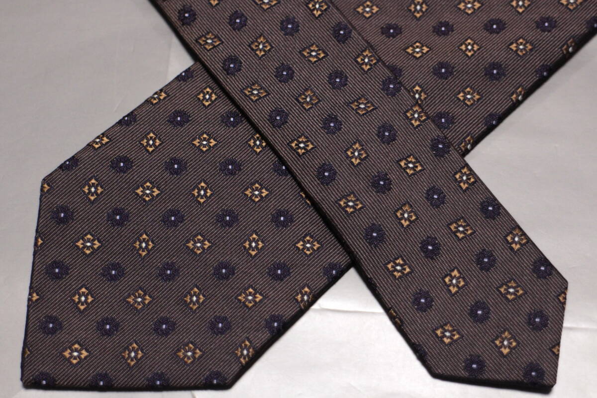 ビームス新品ネクタイ超艶美麗ブラウン*オレンジベージュ*ダークパープル花小紋極上ジャガード織フルハンドメイド