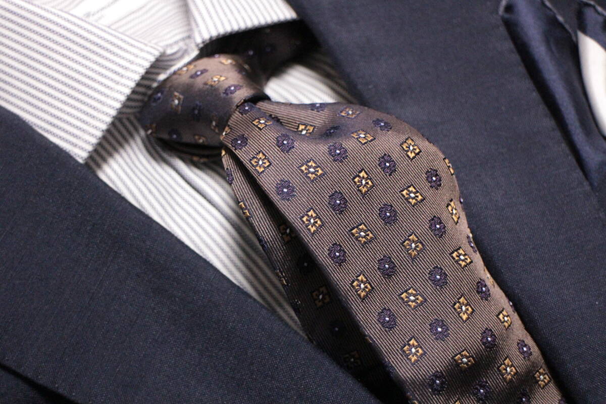 デザインが際立つ、シックさと華やかさを兼備した小紋タイ。