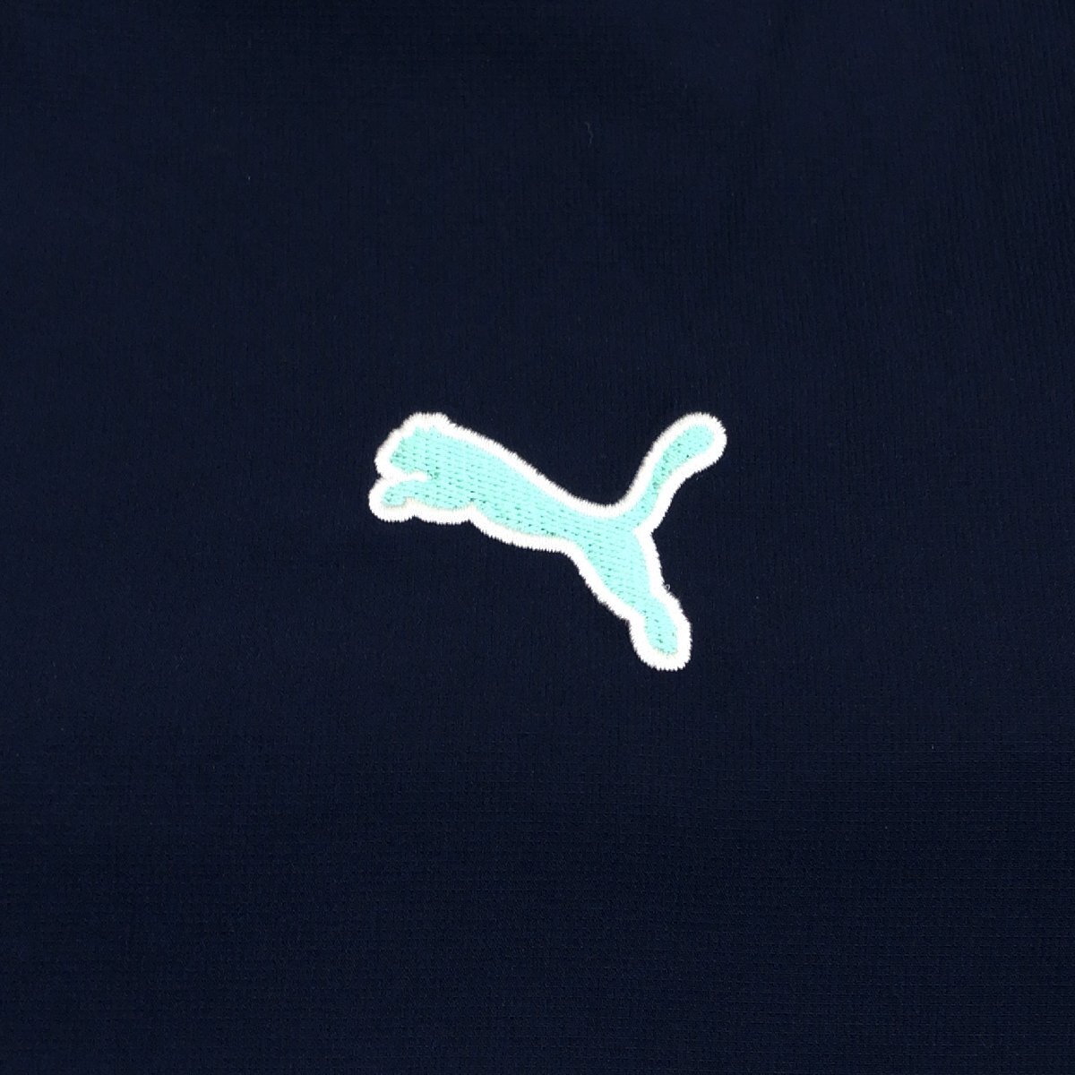 美品 PUMA プーマ DRYCELL ロゴ刺繍 フーデット ウーブン ジャケット L 濃紺 ネイビー ジャージ パーカー フーディ ブルゾン レディース